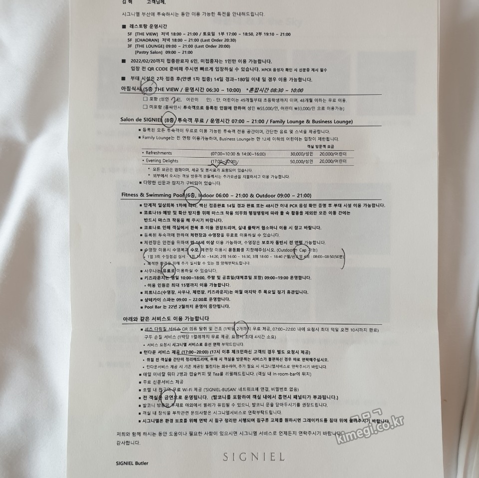 체크인하면 부대시설 이용에대해 자세히 설명해주고 안내 가이드도 이렇게 주네요.