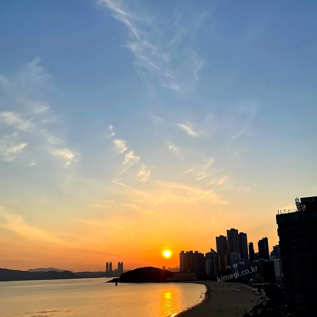 부산을 여러 번 왔었지만 이렇게 예쁘고 멋진 도시라고 이번에 처음 느꼈습니다. 그동안은 남자애들과 와서 그런지 목적이 달랐던 것 같아요. 너무 멋있어서 해가 질 때까지 멍하니 바라보았습니다. 꼭 노을이 지는 시간에 맞춰 수영장을 이용하면 좋을 것 같아요. 숙소가 해운대 뷰라면 숙소에서 보는 것도 좋을 것 같습니다. 저는 미포항 뷰라 수영장에서 보려고 했어요.