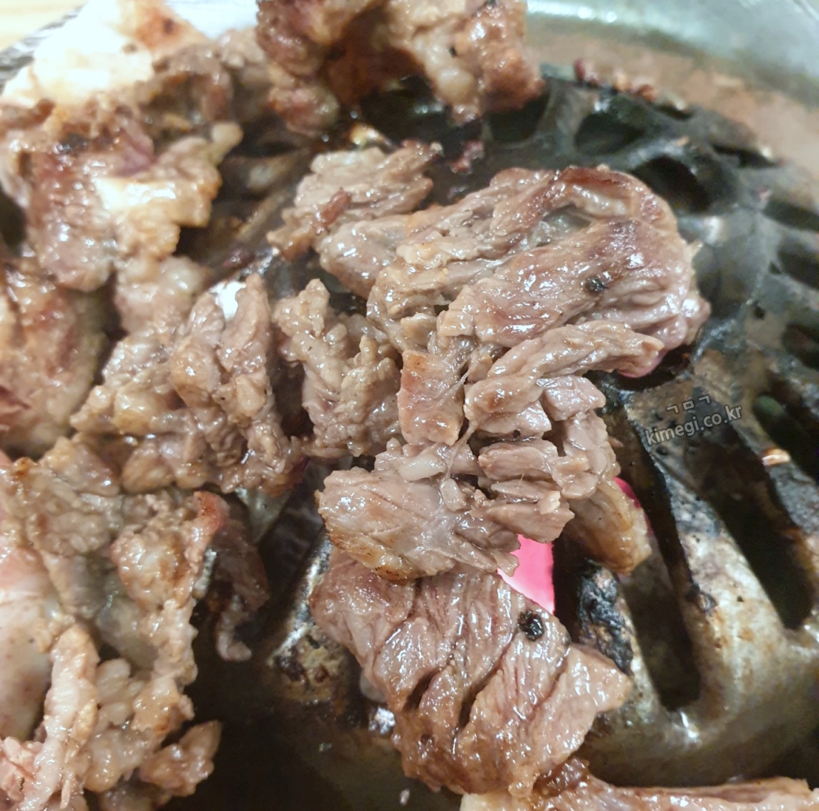 돼지갈비였다면 훨씬 더 큼지막하게 잘랐겠지만 소고기는 잘게 자르게 되더라고요. 한 번이라도 더 먹고 싶어서 어쩔 수 없었습니다.