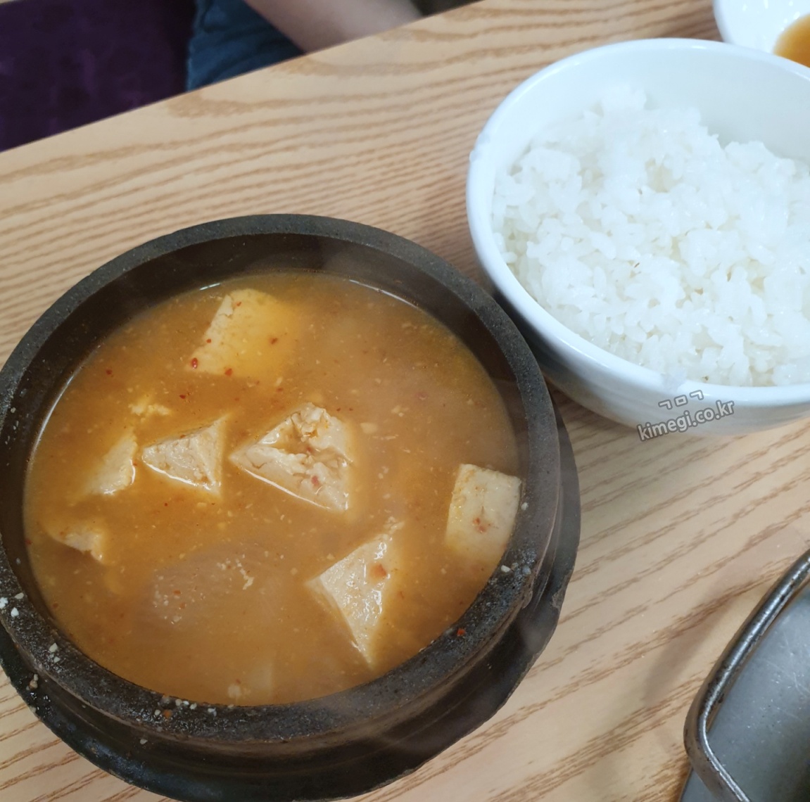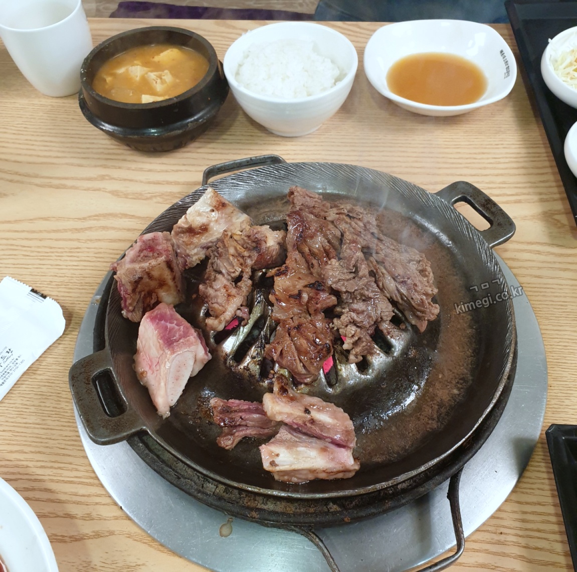 양념갈비는 밥과 함께 먹을 때 더욱 맛있어서 고기를 굽는 동안 밥도 주문했습니다. 공깃밥과 된장찌개가 합해서 2000원입니다.