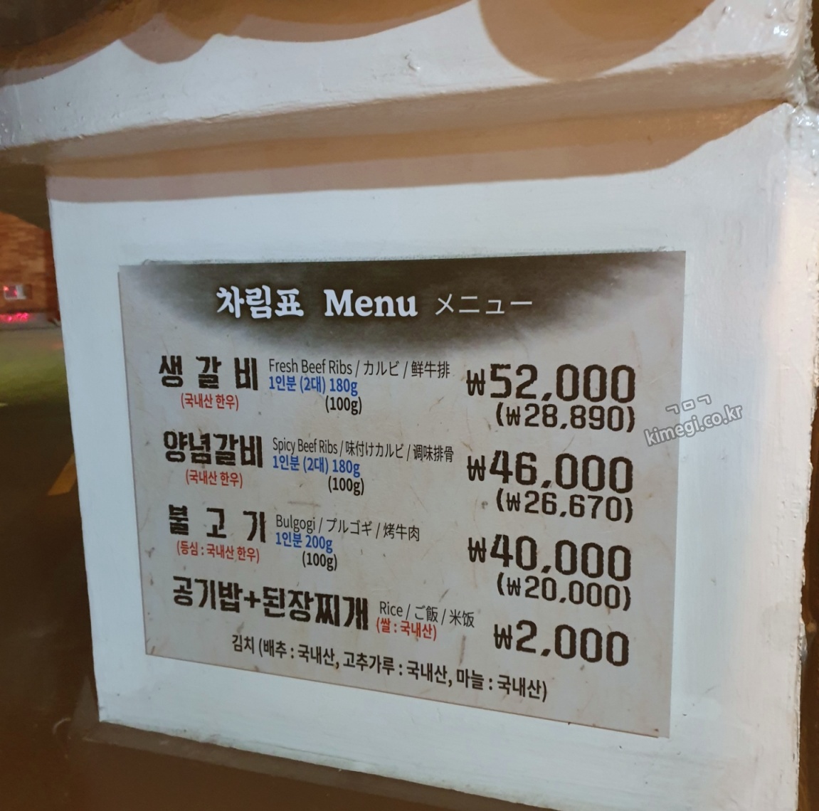 늦은 저녁에 와서 줄은 서지 않았지만 생갈비는 다 떨어지고 없었습니다. 생갈비가 너무 먹고 싶었는데 고민을 하다가 양념갈비를 먹기로 하고 들어갔습니다. 가는 길에 이름난 암소갈비라는 집이 있는데 이름만 비슷하지 다른 집이더라고요.