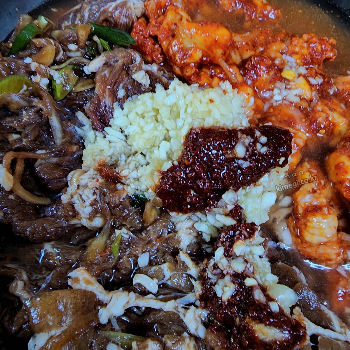 대창불고기 전골을 주문하면 불고기와 대창이 양념되어서 같이 나와요. 이렇게 다르게 양념한 두 가지 음식을 섞어서 먹는다는 것이 정말 신선했어요. 어떤 맛일지 상상이 안되더라고요.