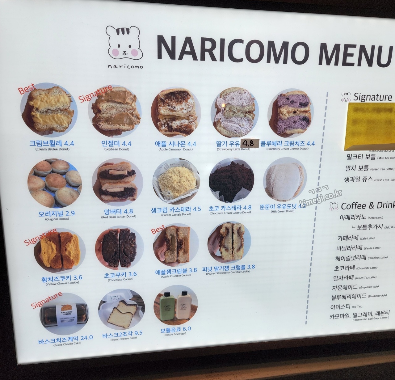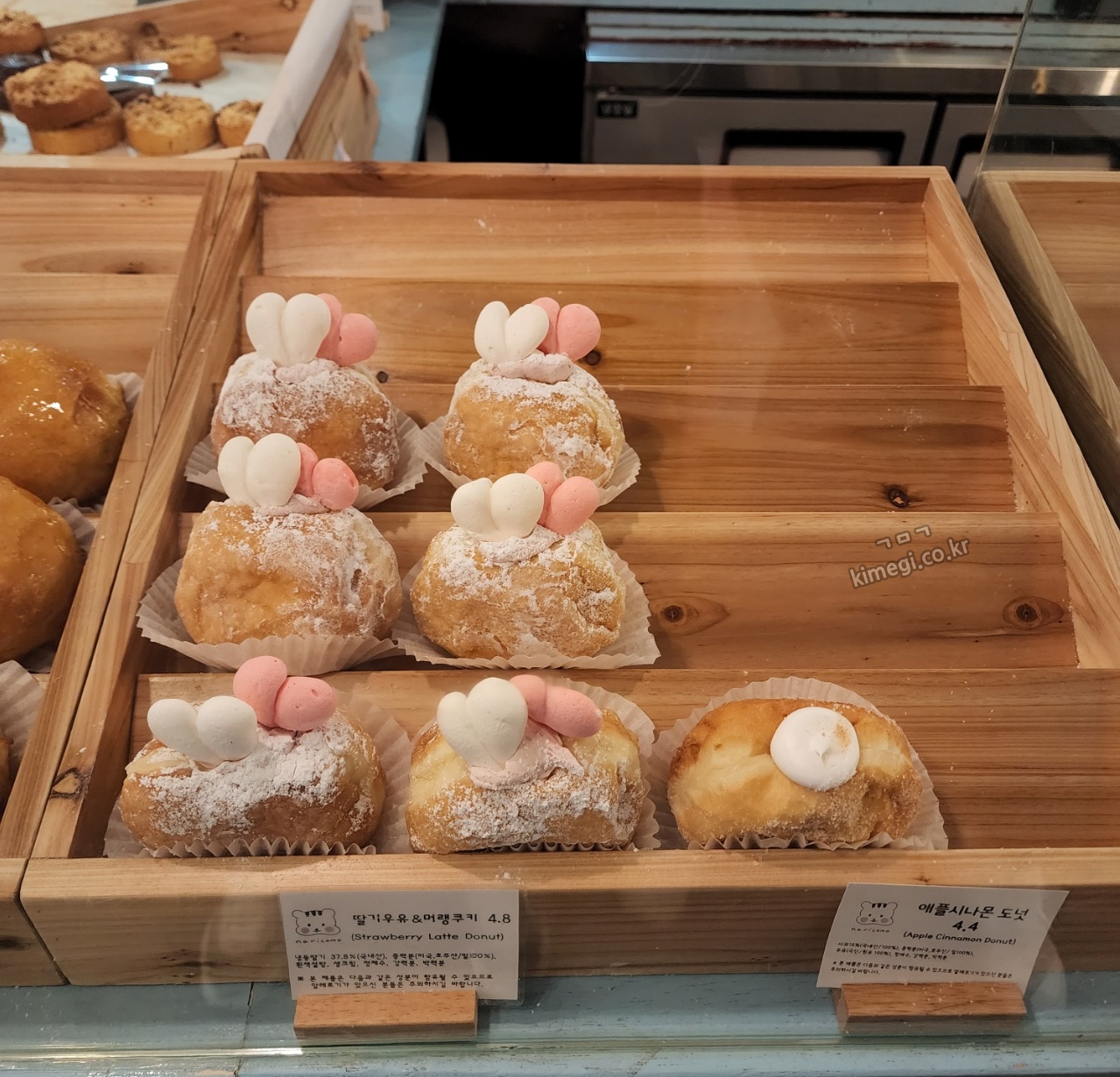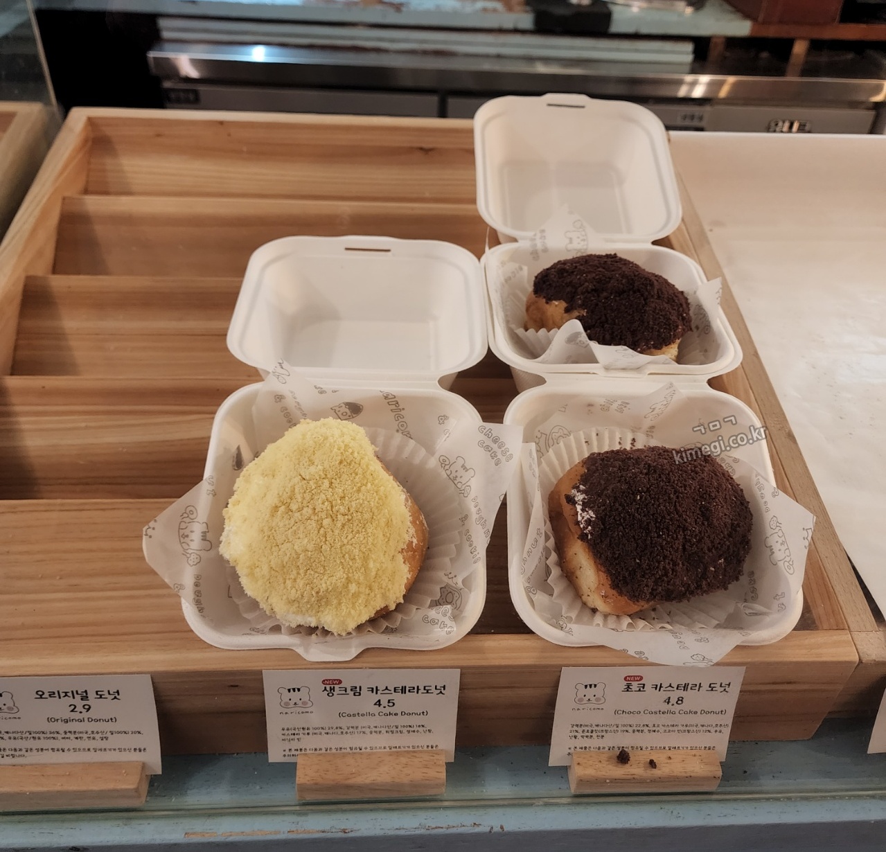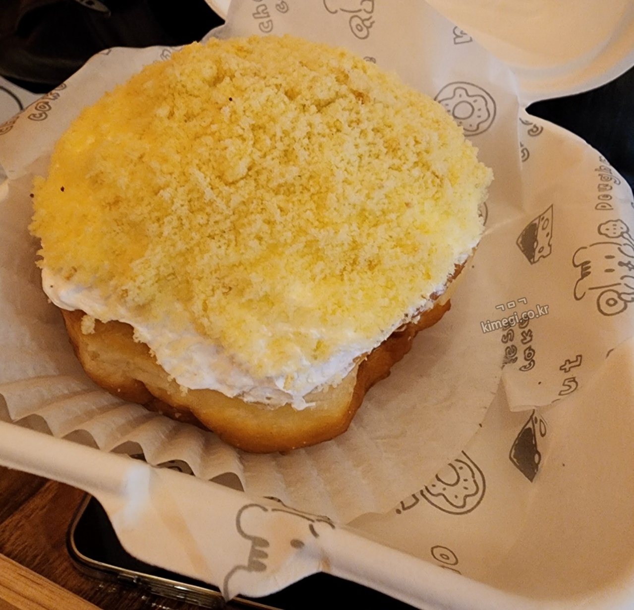 생크림 카스텔라 도넛은 포장을 했지만 일단 사진을 찍어 놓았어요. 숙소에서 여자 친구가 순식간에 먹어버릴 수 있기 때문에 미리 찍어 놓아야 합니다. 나리꼬모는 정말 빵 반죽이 맛있는 것 같아요. 그래서 도넛이 다 맛있어요.
