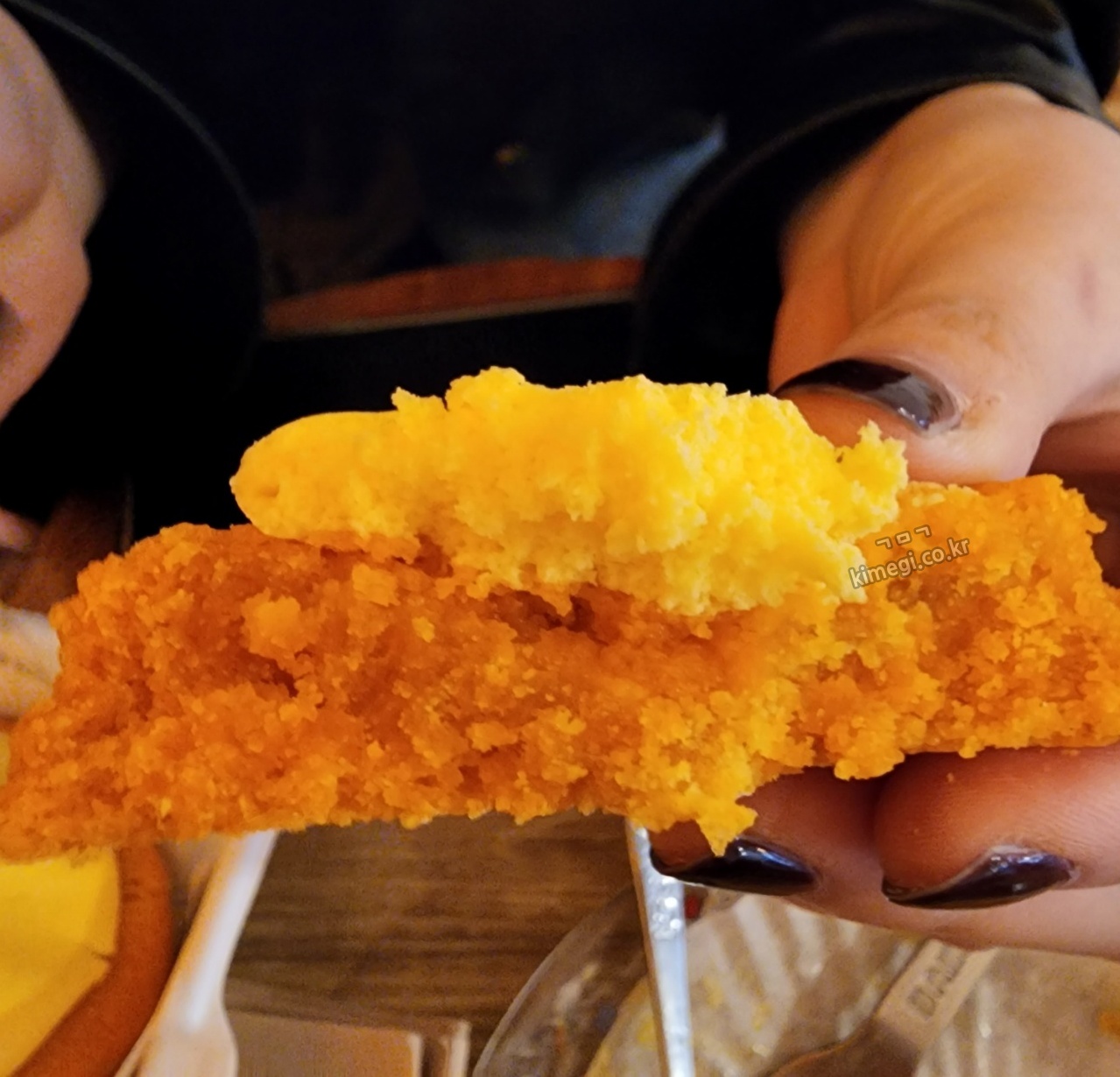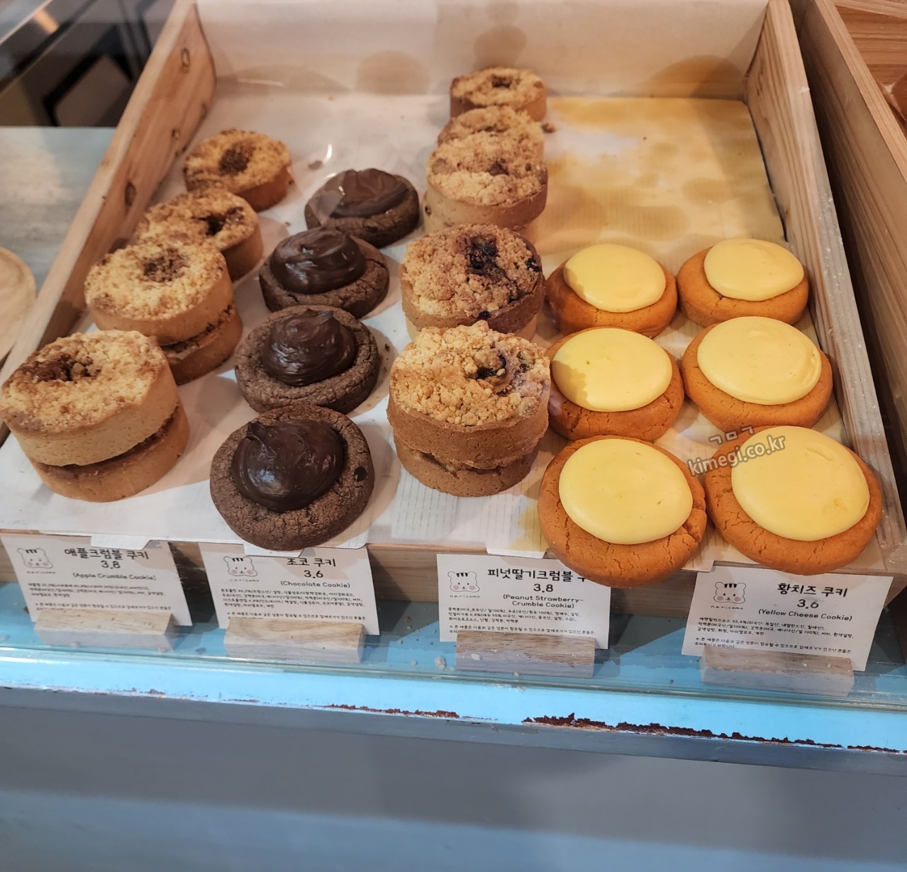 애플 크림블 쿠키와 황치즈 쿠키인데 정말 맛있습니다. 황치즈 쿠키는 뽀또 맛인데 쫀득쫀득해서 너무 맛있었어요. 그리고 제가 가장 좋아했던 메뉴는 애플 크림블 쿠키입니다. 시중에 파는 과자 중에 이런 맛이 있었던 것 같기도 한데 진짜 맛있었어요. 지금 생각해보면 더 많이 사 왔으면 좋았겠다고 생각하는 나리꼬모 메뉴입니다.