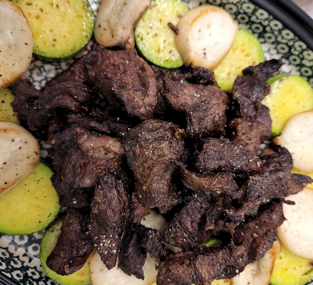 고기가 살짝 탄 것 같지만 정말 잘 익었어요. 에어 프라이기로 두 번 구워야 해서 나중에 한번 더 데웠더니 색이 좀 진해졌지만 정말 맛있었습니다.
