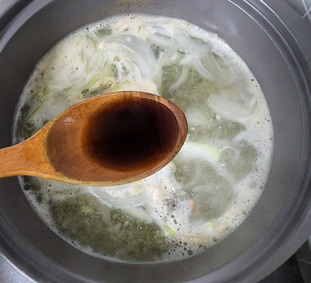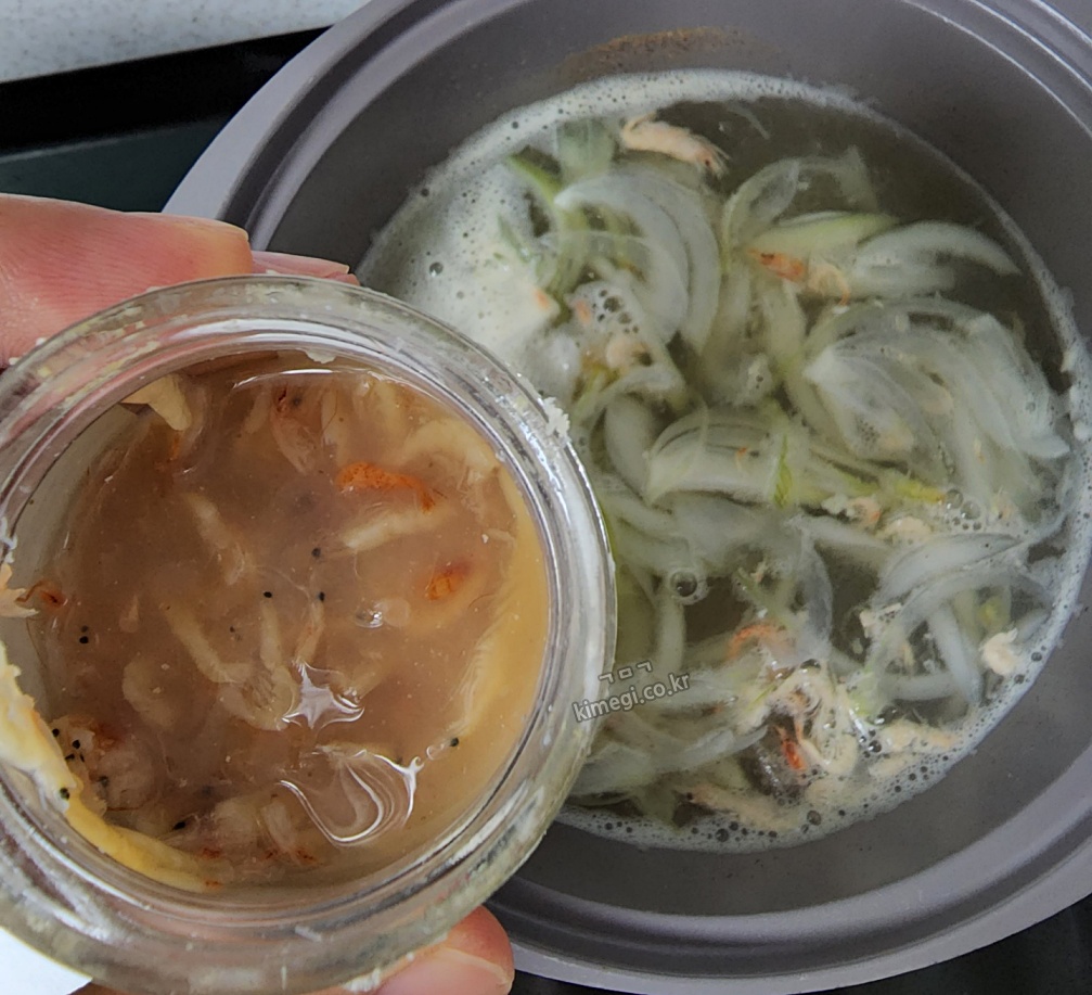 2. 양파를 넣고 새우젓과 국간장으로 간을 해준다. 새우젓으로 간을 해주면 조금 더 맛있는 것 같아요. 새우젓으로 간을 한다고 생각하고 국간장으로 향만 맞춰주면 좋습니다.
