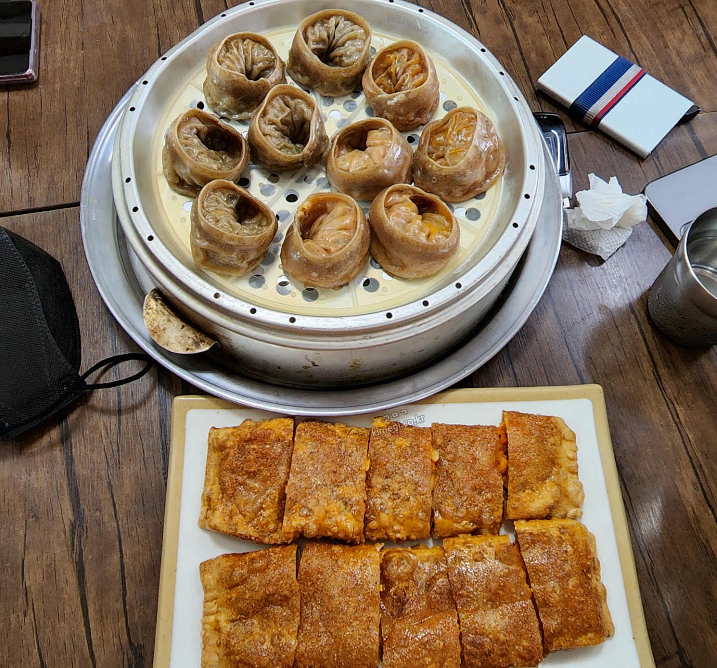 사이드로 주문한 썩어 만두와 전병입니다. 만두는 메밀로 만든 만두피였는데 맛은 그냥 만두였어요. 만두보다 전병이 진짜 너무 맛있었어요.