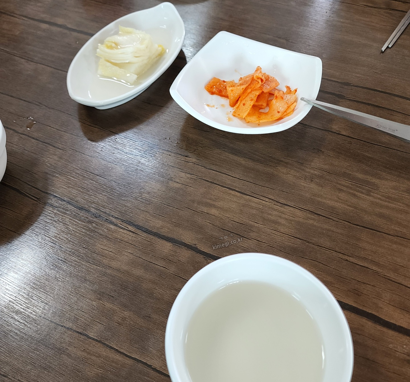 밑반찬은 새콤한 무김치와 동치미 백김치가 나왔습니다. 육수를 동치미 국물을 쓰는지 백김치가 나왔어요. 비빔 막국수용 육수도 나왔는데 동치미 국물이었어요. 그런데 짜지 않고 시원해서 그냥 먹기에도 좋더라고요.