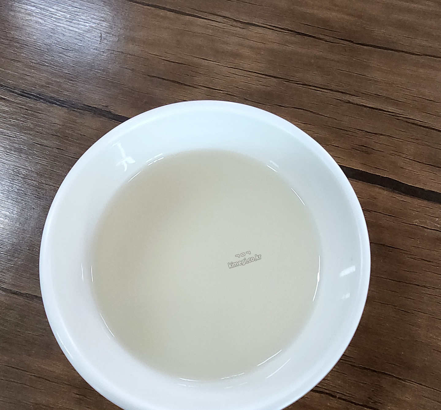 공용으로 먹을 물 막국수가 나왔습니다. 육수는 똑같이 동치미 국물이었는데 짜지 않고 시원했어요. 메밀면의 향기를 더 잘 느낄 수 있었고 살짝 심심하면서도 시원한 맛이었어요. 비빔을 먼저 먹고 먹어서 그런지 조금 약하긴 했지만 시원한 육수가 너무 좋았습니다.