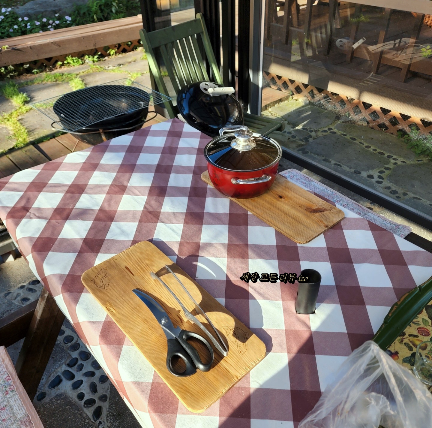 예쁜 정원에서 조금 덥지만 이렇게 구워 먹으니까 좋더라고요. 그런데 파리가 조금 있어서 불편하긴 했어요.