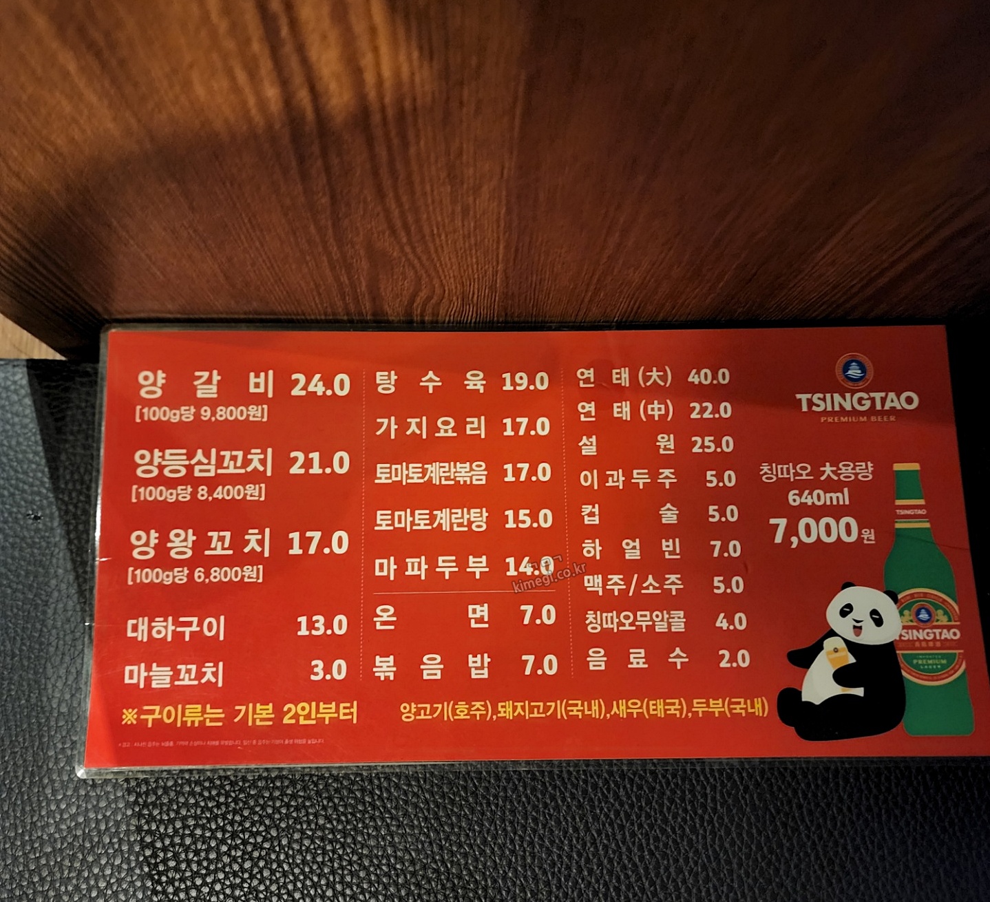 양재 이가네 양꼬치 메뉴판