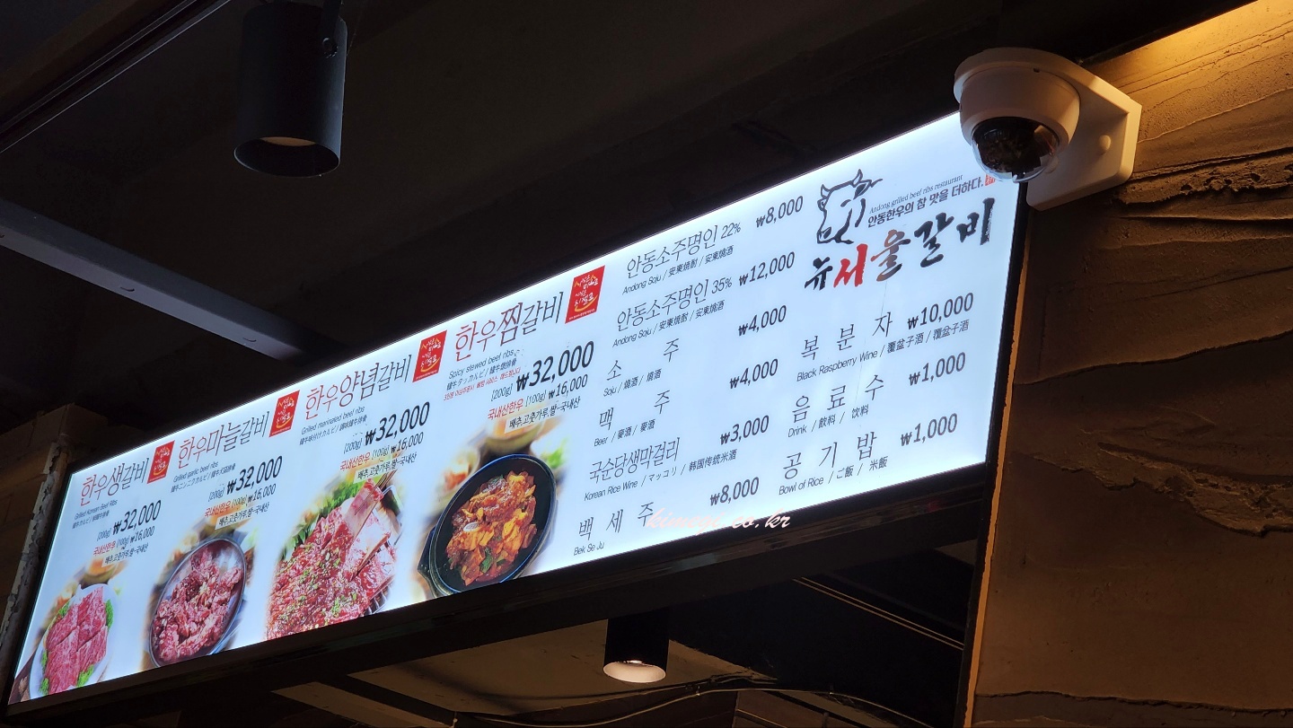 안동 맛집 뉴서울갈비 메뉴판