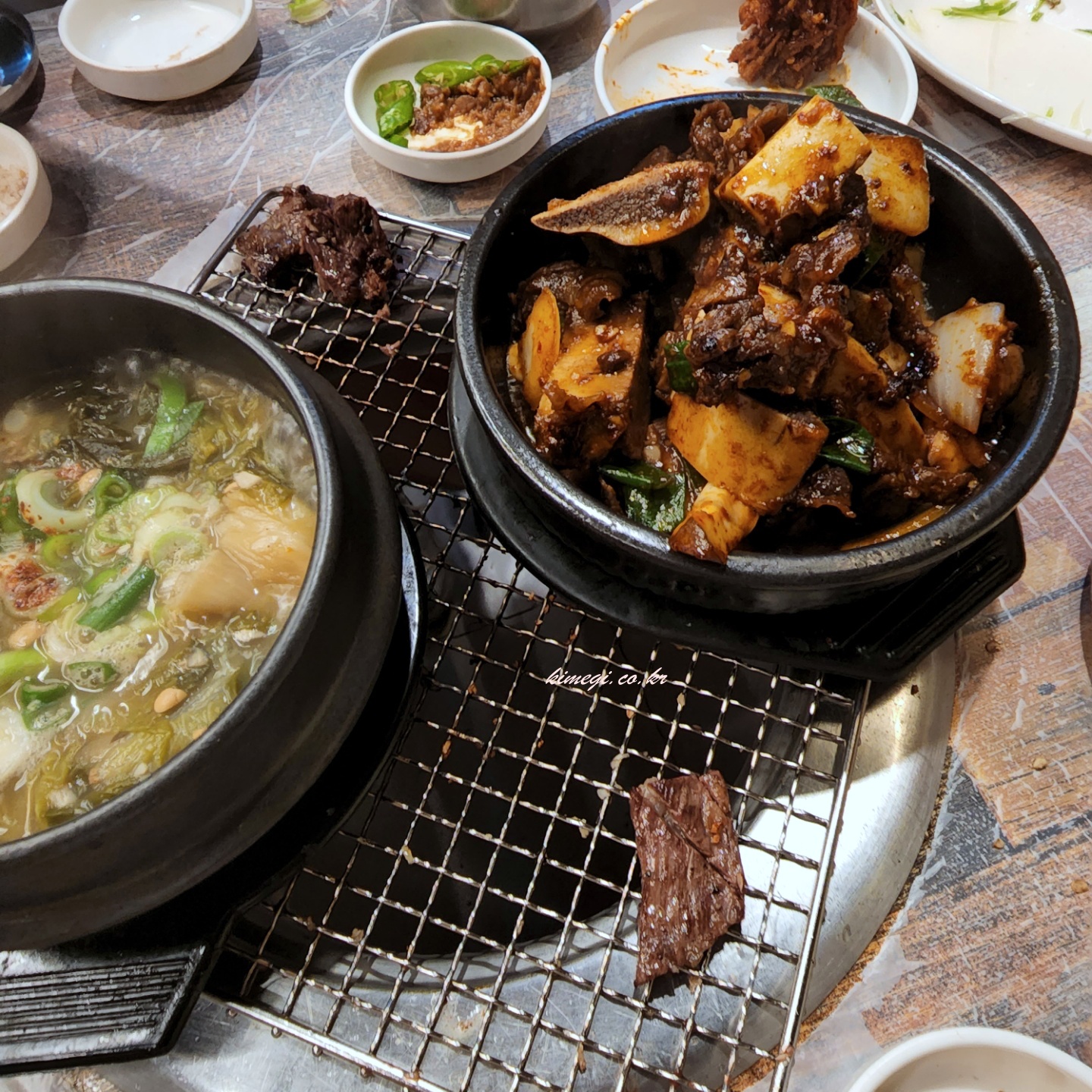 고기를 다 먹으면 고기에서 나온 뼈로 뼈찜을 만들어 줍니다. 이 뼈찜이 솔직히 가장 맛있었어요. 밥이랑 함께 먹으면 진짜 너무 맛있었어요. 소고기를 저 많이 붙여서 잘라줬으면 좋았겠다고 느낄 정도로 양념이 맛있었어요. 뼈에 붙은 고기가 가장 맛있다는 이야기가 사실인 것 같습니다.