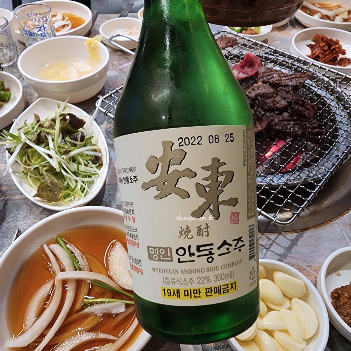 안동에 왔으니 안동소주도 주문해 주었어요. 명인 안동소주인데 가격도 적당하고 깔끔하고 맛있었습니다. 한우와 함께 안동소주도 먹고 진짜 푸짐한 여행 저녁이었어요. 점심부터 안동갈비, 국밥, 배추전 등 엄청 먹었는데도 너무 맛있어서 배불러도 계속 들어가더라고요.