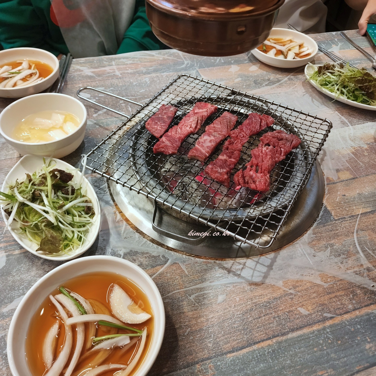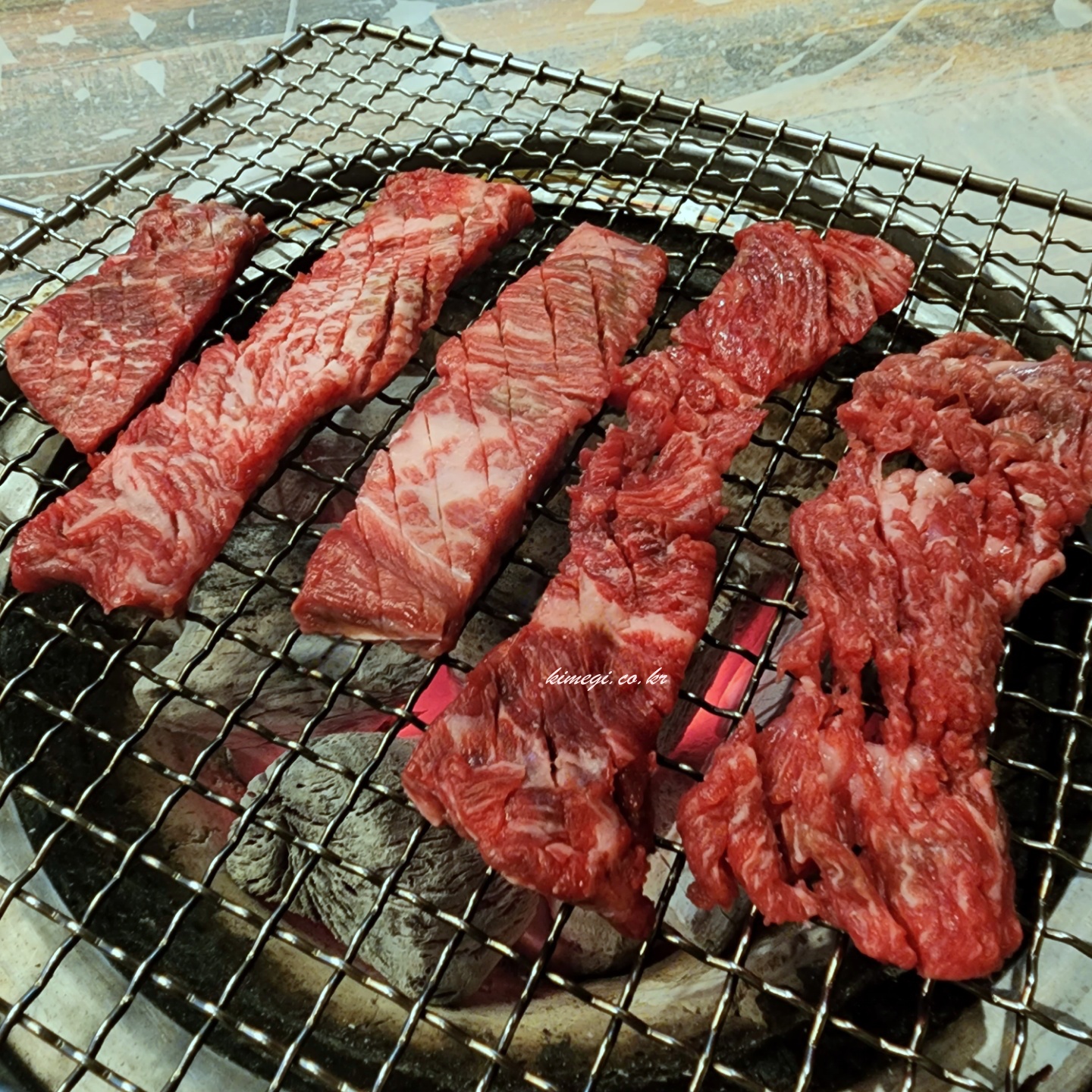 숯불이 들어오고 한우를 구워주었습니다. 엄청 두툼하고 그러진 않아서 금방 익힐 수 있었어요. 오랜만에 먹는 한우라 정말 기대가 되었습니다.
