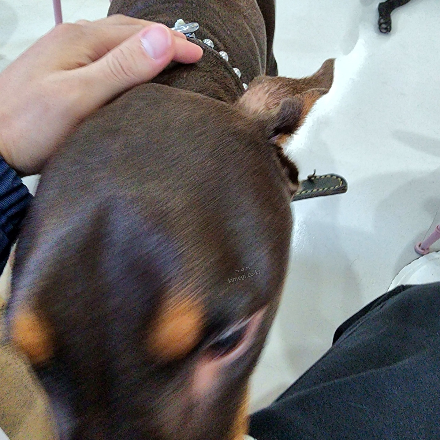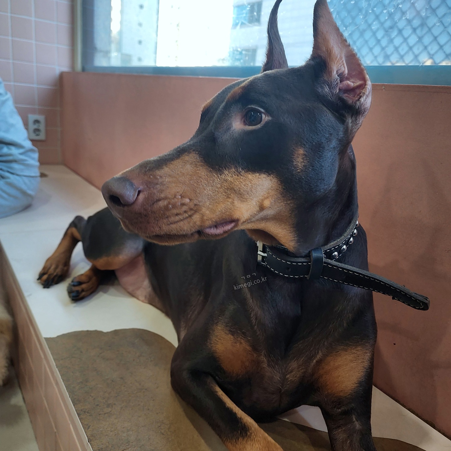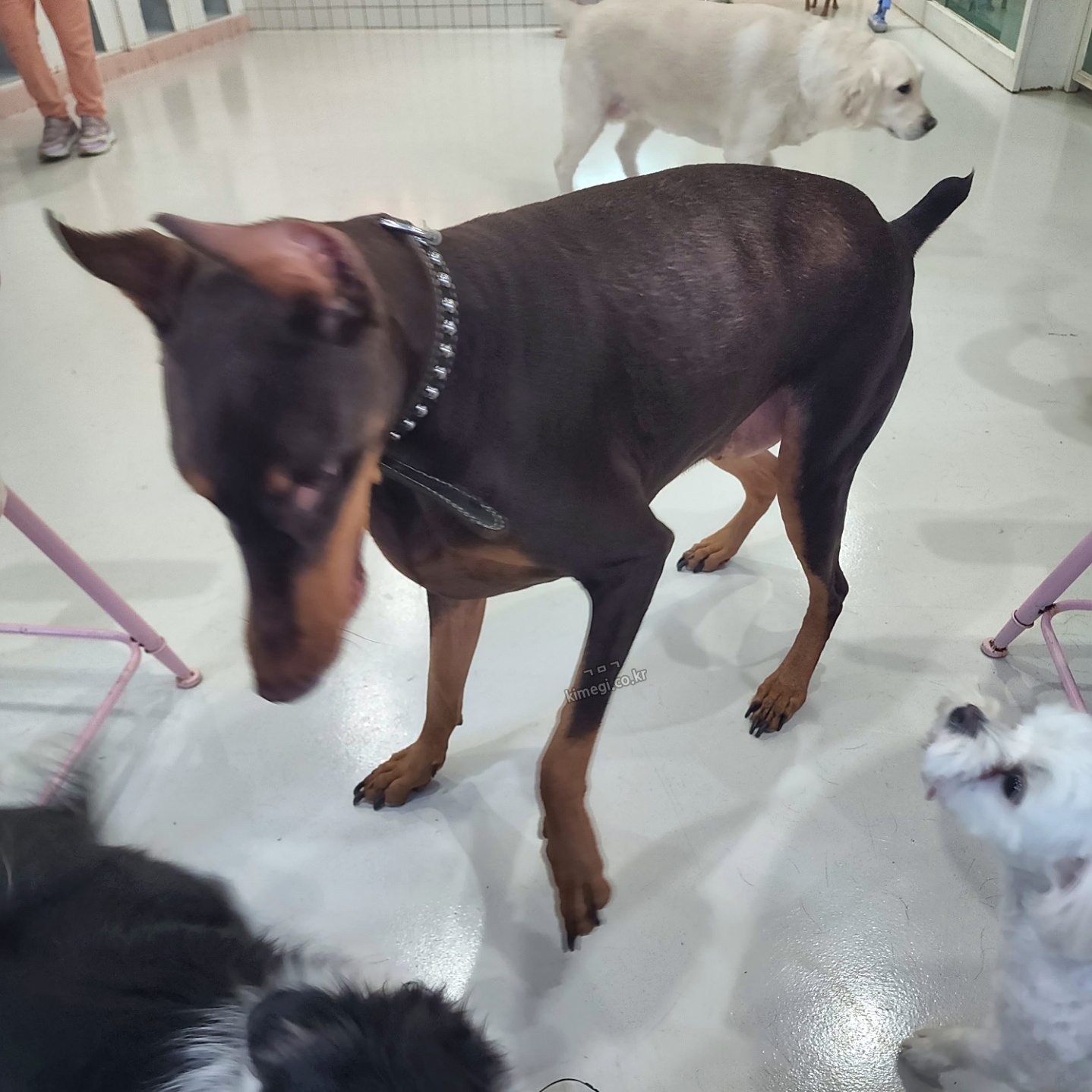 도베르만은 한참을 뛰어다니면서 놀다가 제 옆자리를 차지하고 눞더라고요. 몸이 정말 근육 같고 탄탄하더라고요. 정말 멋있어요. 그런데 침을 조금 많이 흘리긴 하더라고요.