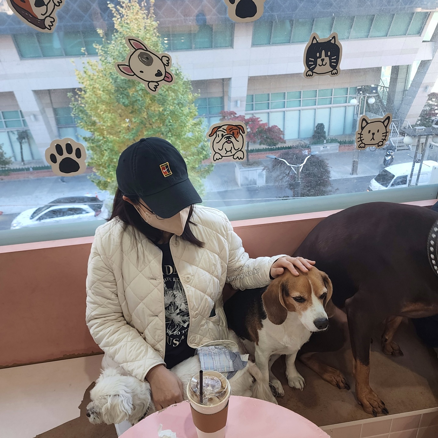 이용은 사람당 음료를 주문하면 됩니다. 사실 음료는 안중에 없고 얼른 아이들과 놀고 싶었어요. 플레인요거트롸 바닐라라떼를 주문하고 자리를 잡았습니다. 애교가 많은 강아지들이 정말 많아요. 자리에 앉으니까 하나 둘 자기를 만져달라고 오더라고요.