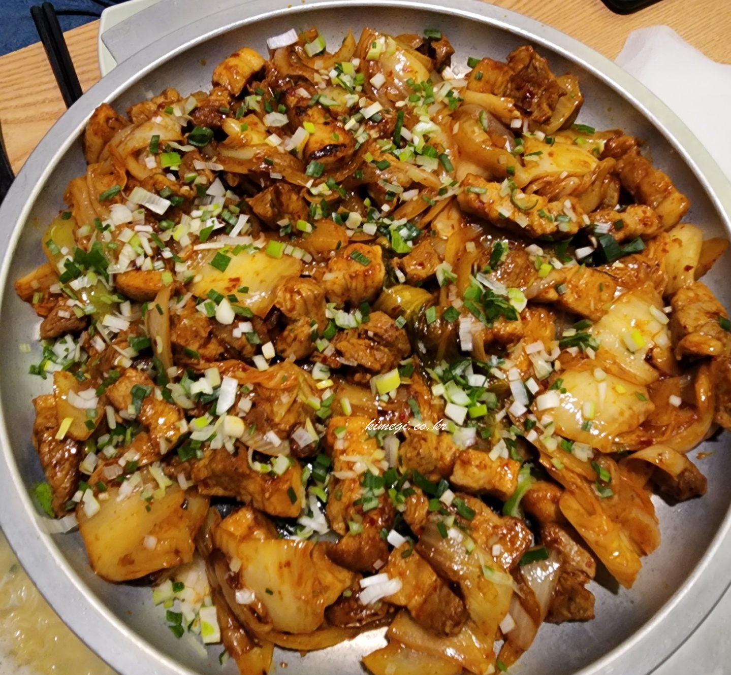돼지고기 김치 볶음이 먼저 나왔습니다. 2인분인데 양이 진짜 많아요. 가격도 9500원으로 아주 저렴하고 맛있습니다. 사실 돼지고기와 김치를 볶으면 안 맛있을 수가 없습니다. 우리가 아는 그 돼지김치볶음 맛인데 아주 저렴하고 푸짐해서 좋은 것 같아요.