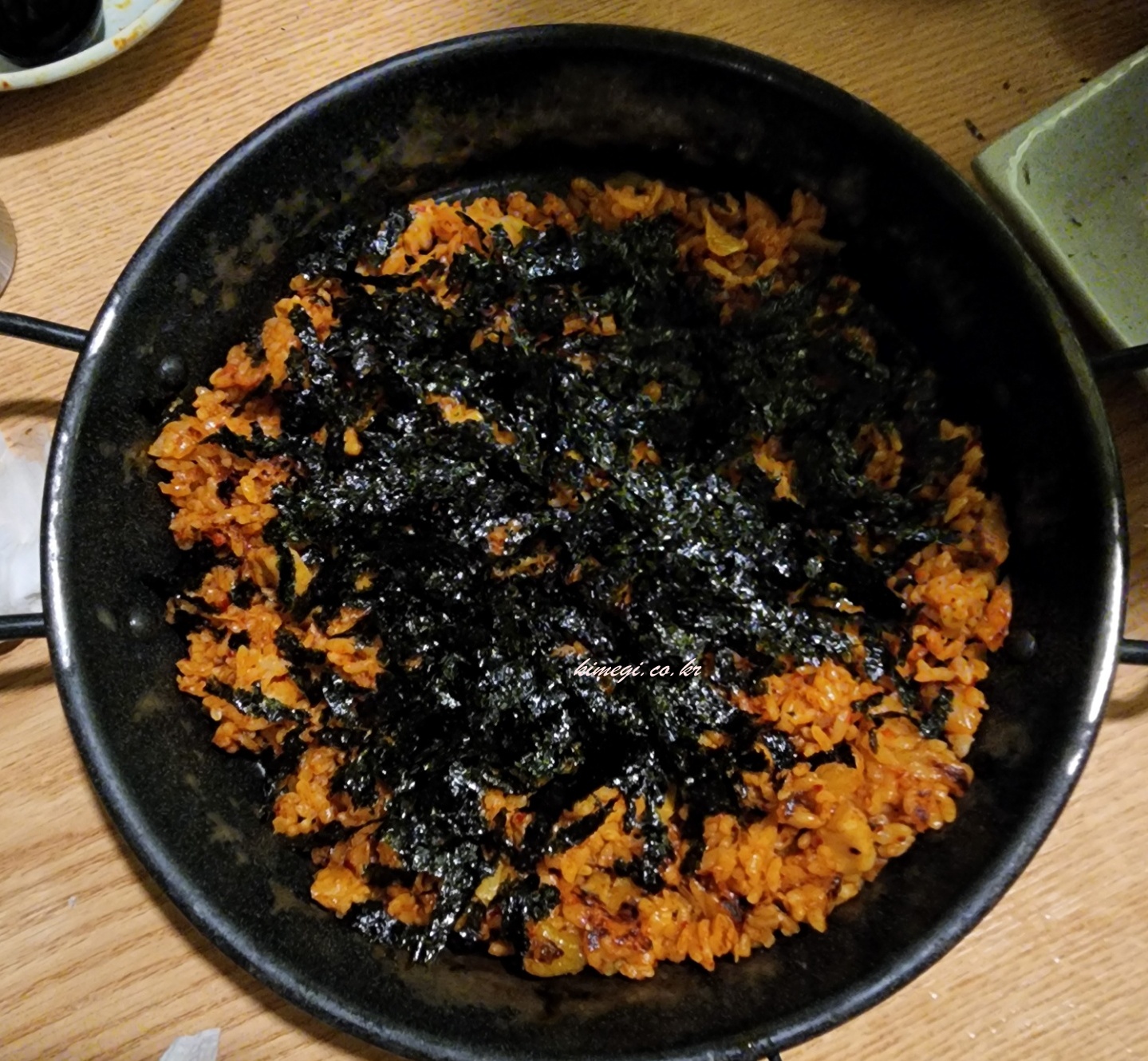 볶음요리를 먹고 난 뒤에는 꼭 볶음밥을 먹어줘야 합니다. 볶음밥은 새로운 그릇에 볶아서 주더라고요. 먹던 판에 볶아먹어도 좋을 것 같은데 따로 볶아서 주었어요. 볶음밥도 역시 너무 맛있었습니다. 김가루를 저정도 뿌리면 안 맛있을 수가 없습니다. 술 먹기 전에 든든한 식사를 하기 좋은 저렴하고 맛있는 잠실새내역 맛집 홀짝집이였습니다.