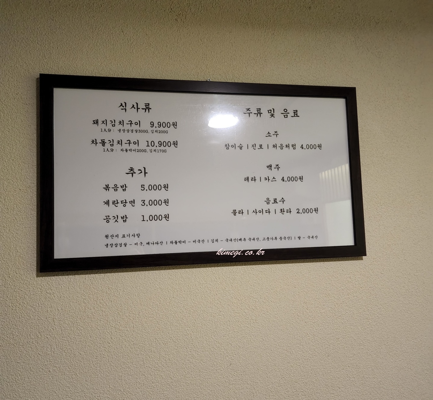 잠실새내역 맛집 홀짝집은 메뉴가 두 가지입니다. 돼지김치구이와 차돌김치구이 2가지를 판매하고 있습니다. 저희는 돼지김치구이 2인분 차돌김치구이 2인분을 주문했어요.