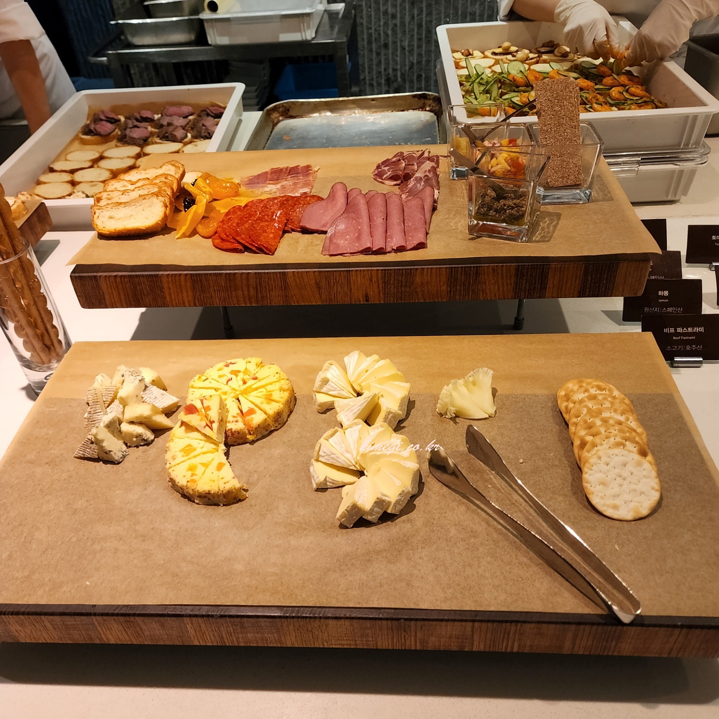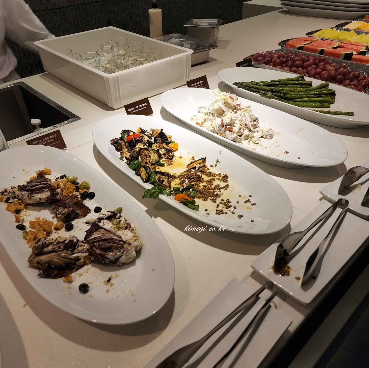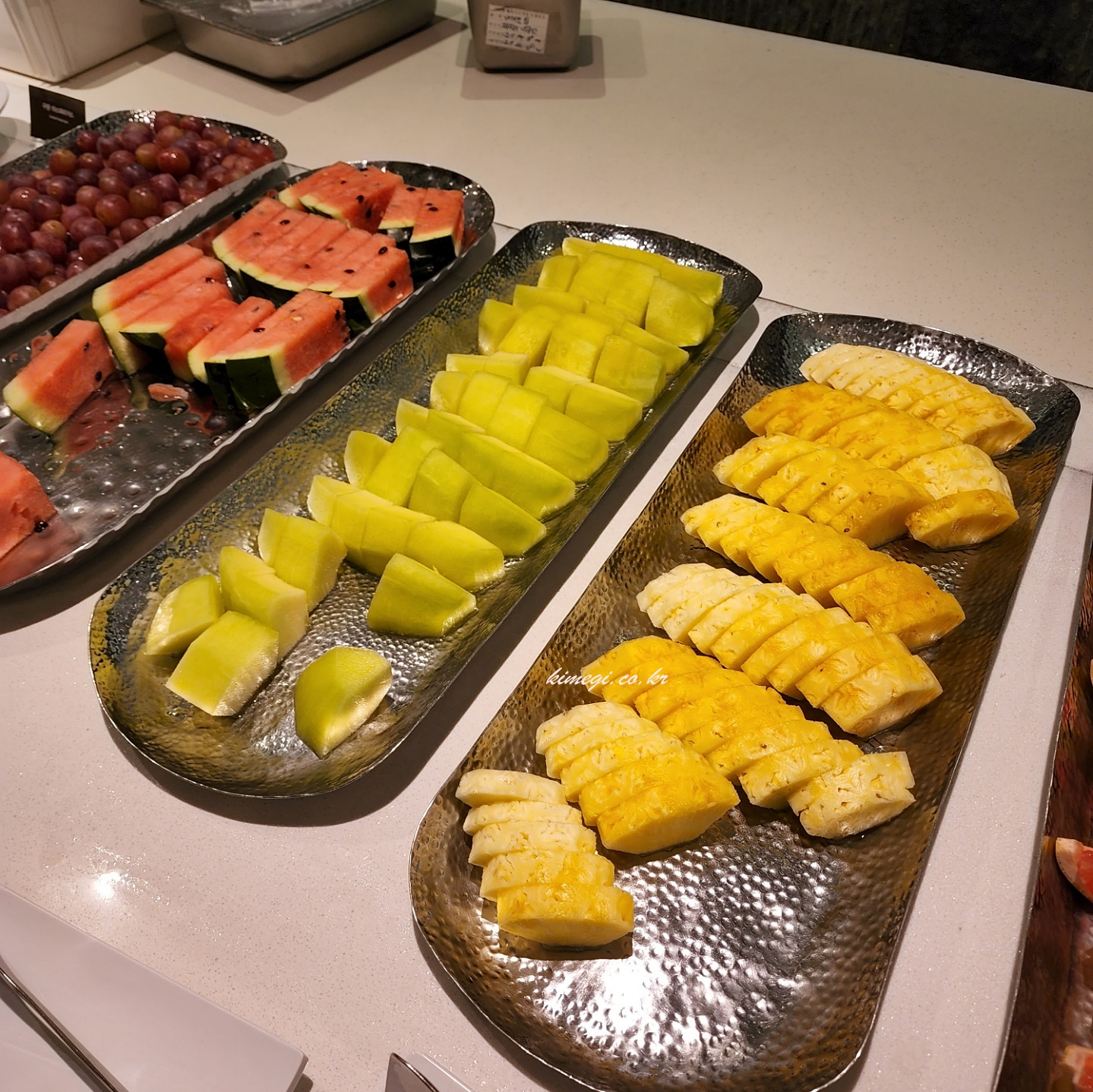 샐러드와 과일도 종류가 많았어요. 특히 저는 수박이 맛있더라고요. 여름이 아닐 때 보통 수박을 안 먹게 되는데 수박을 정말 많이 맛있게 먹었습니다.