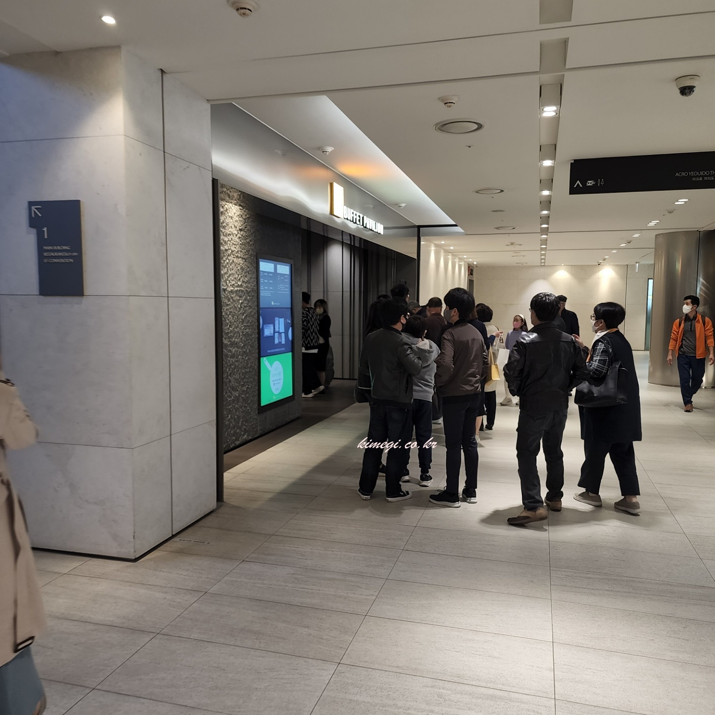 63빌딩 파빌리은 예약을 하고 방문을 해야 합니다. 저는 주말 런치로 예약을 했고 타입별로 예약을 받는 것 같아요. 런치는 11시 타임과 13시 30분 타임이 있어서 13시 30분으로 예약했어요. 브레이크 타임을 보니 63 빌딩 파빌리온 식사시간은 런치 11시, 13시 30분이고 디너는 17시, 19시 30분이 있습니다. 원하는 시간대에 예약을 한 뒤 방문하시면 됩니다. 줄이 엄청 길었는데 정리 시간이 끝나면 금방 들어가더라고요.