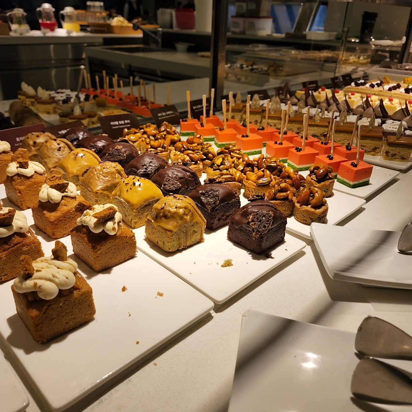 배가 부르지만 디저트는 또 먹어야 합니다. 디저트 종류도 역시 정말 많았습니다. 배가 불러서 그런지 그렇게 빵 종류는 그렇게 맛있지는 않았습니다. 요리는 정말 맛있었는데 베이커리는 보기에는 정말 예쁘긴 했는데 평범하거나 특이하더라고요.