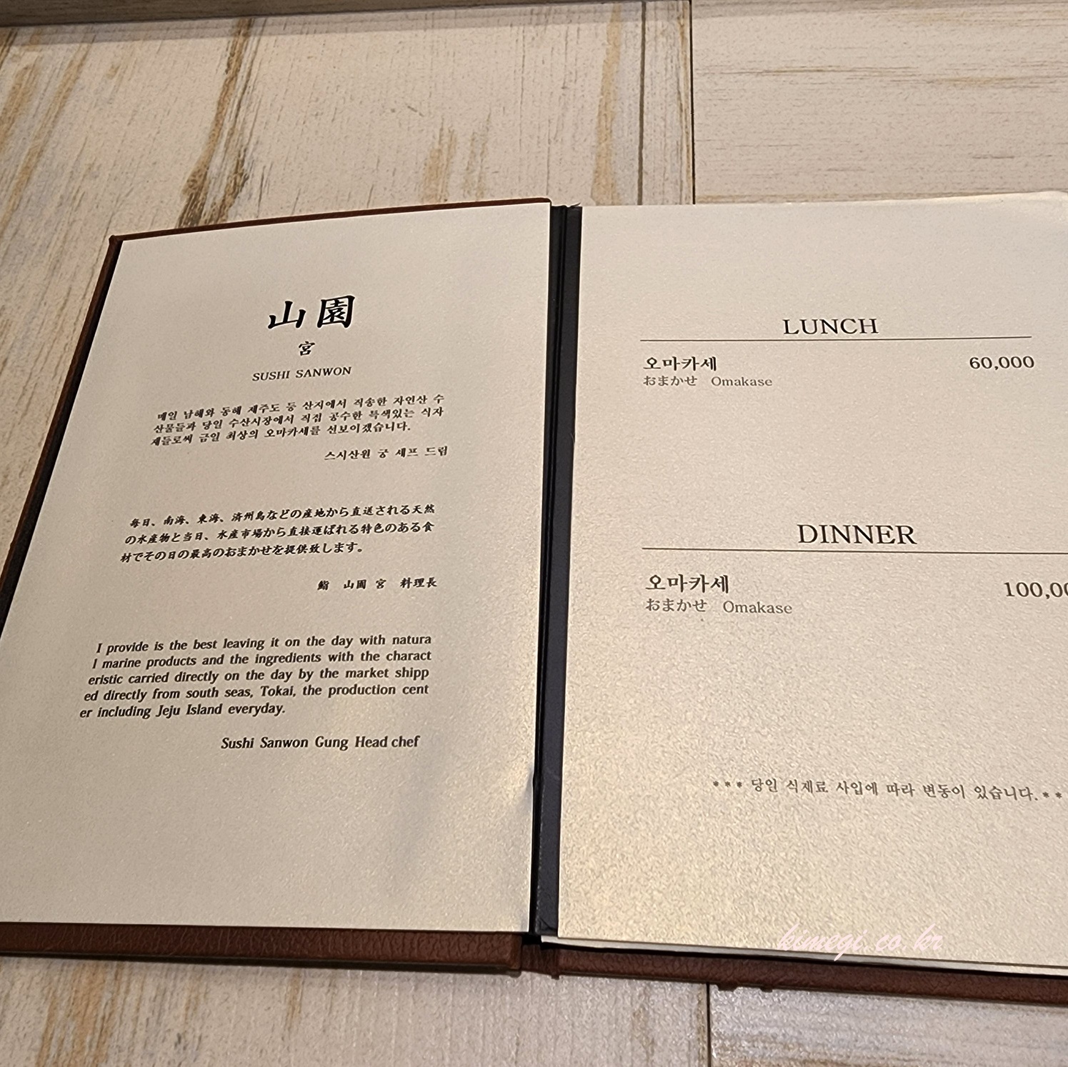 경복궁역 맛집 스시산원궁 메뉴판