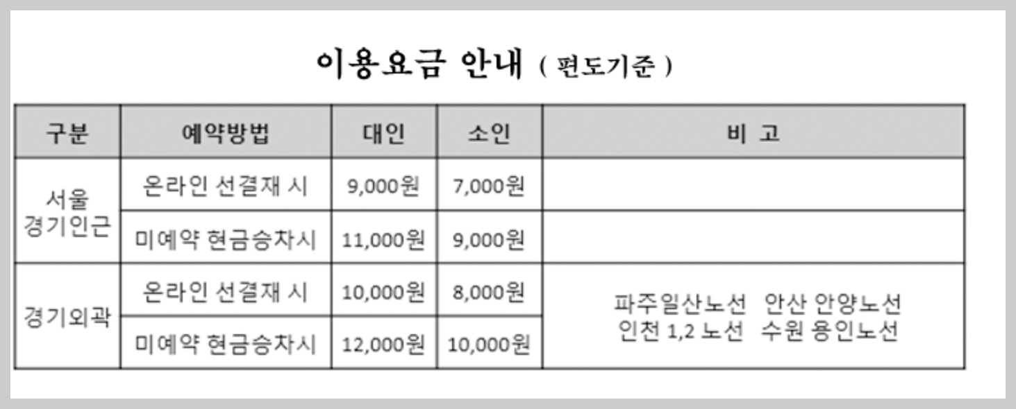 비발디파크 수도권 유료셔틀버스 운영안내