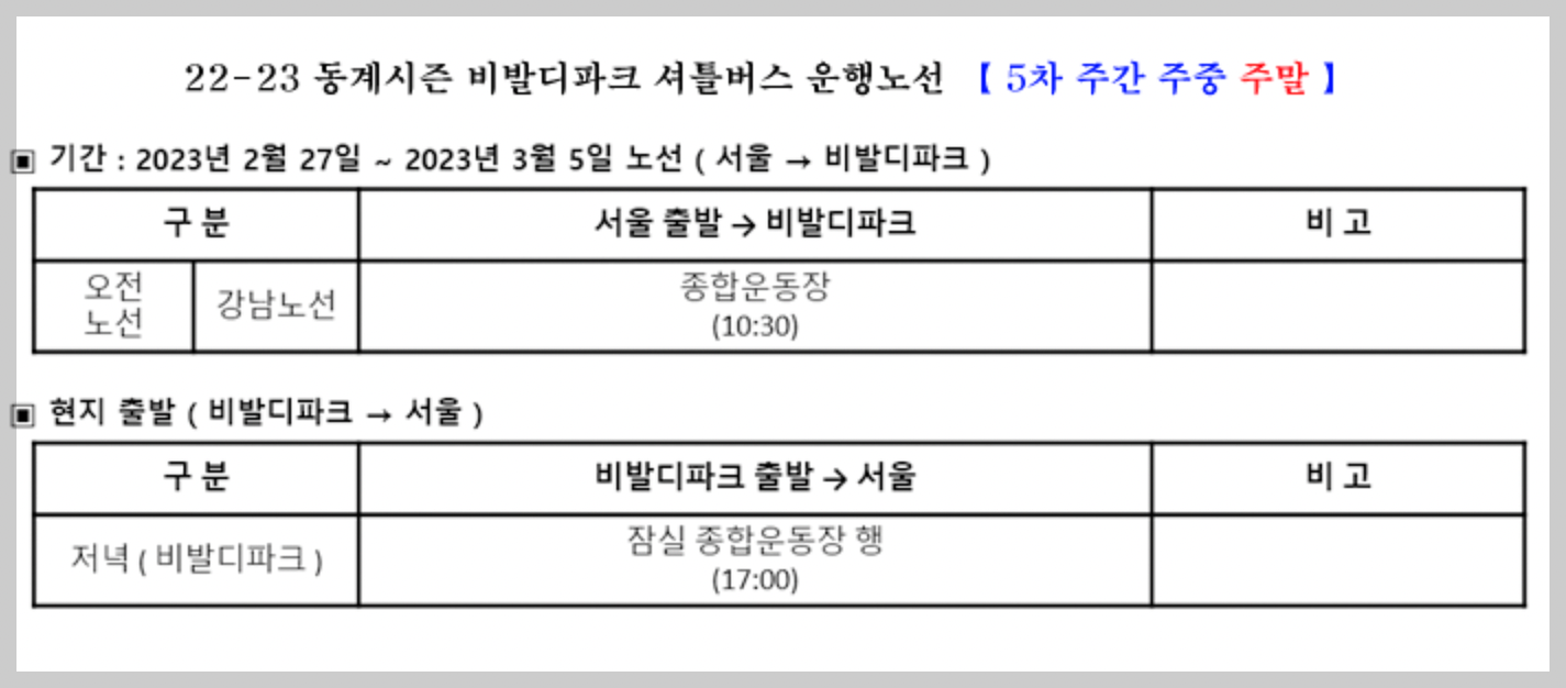[홍천 비발디파크] 소노벨 비발디파크 셔틀버스로 즐기기 셔틀버스 노선표