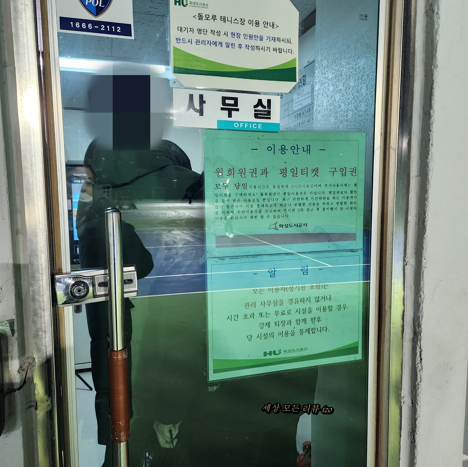 코트 옆에서 기다리다보면 전에 이용하던 사람이 시간이 되고 나오면 이용하면 됩니다. 예약 과정이 정말 간편하고 공평해서 좋습니다.