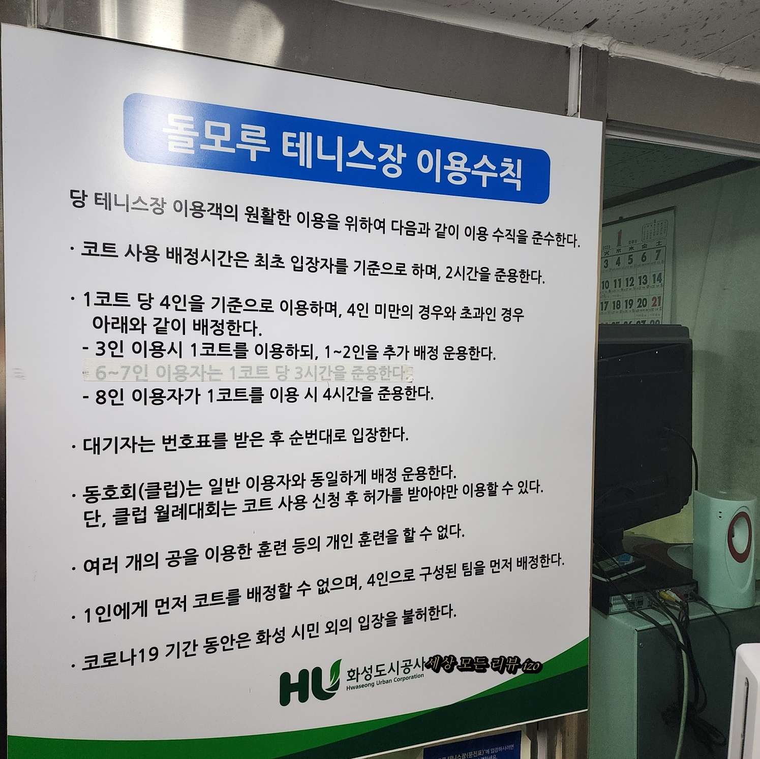돌모루 테니스장은 4인 이상이 모여야 이용할 수 있다고 해서 친구가 지인을 더 불러서 4명을 만들어서 방문했어요. 화성 석우동 돌모루근린공원에 있는 돌모루 테니스장을 이용했는데 진짜 잘 되어 있더라고요. 처음 테니스로 시합을 해보는 거라 너무 설레었어요.