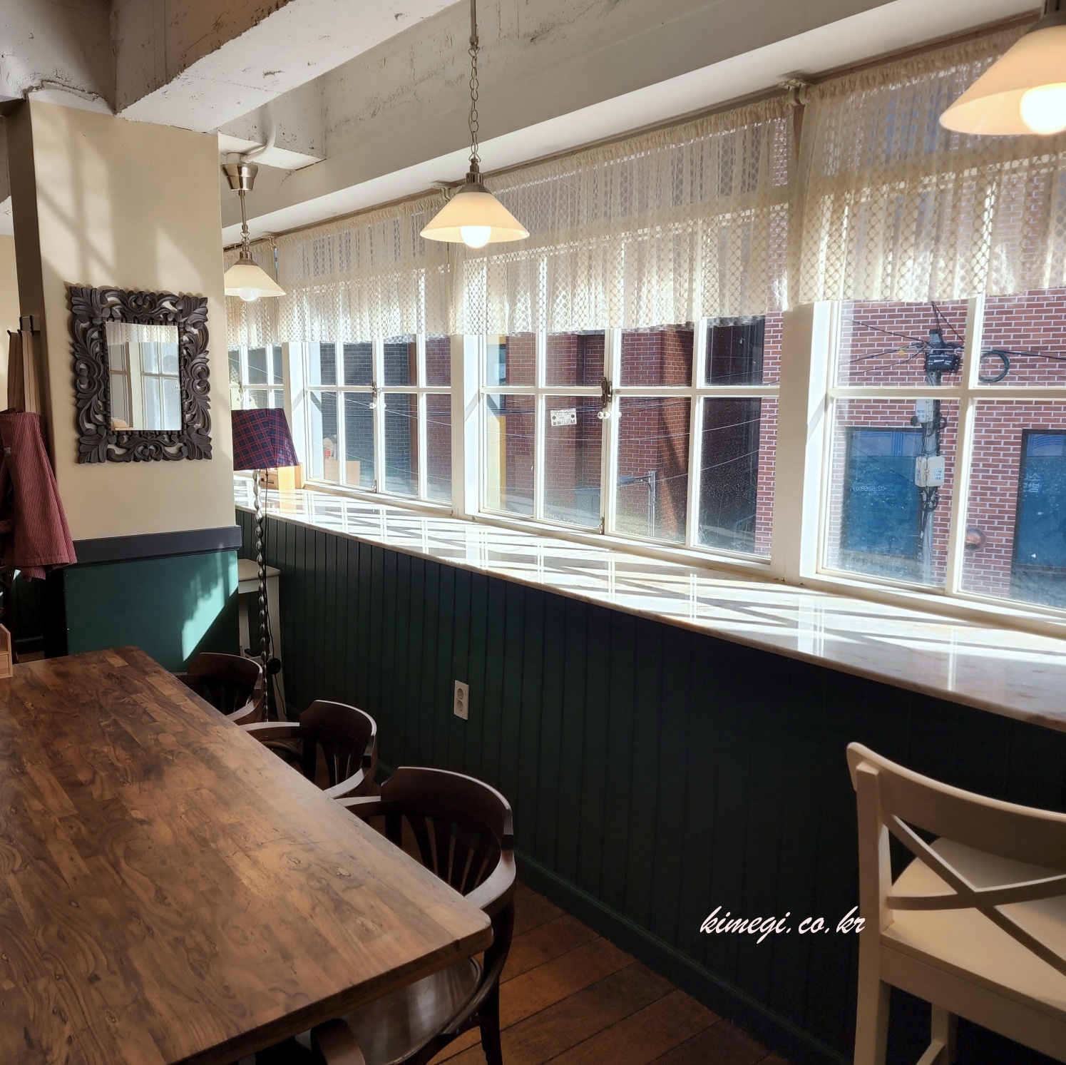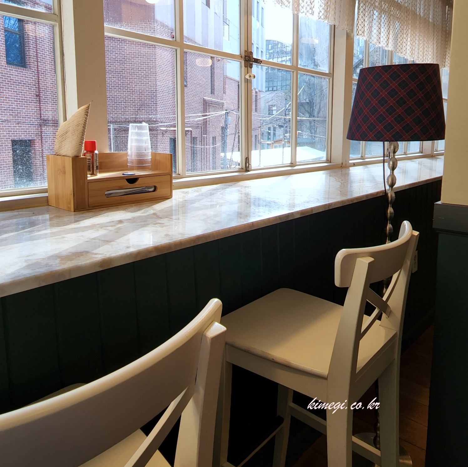 창 밖을 보면서도 먹을 수 있게 1인용 좌석도 준비되어 있었어요. 깔끔한 인테리어에 빛도 예쁘게 들어와서 좋은 것 같더라고요.