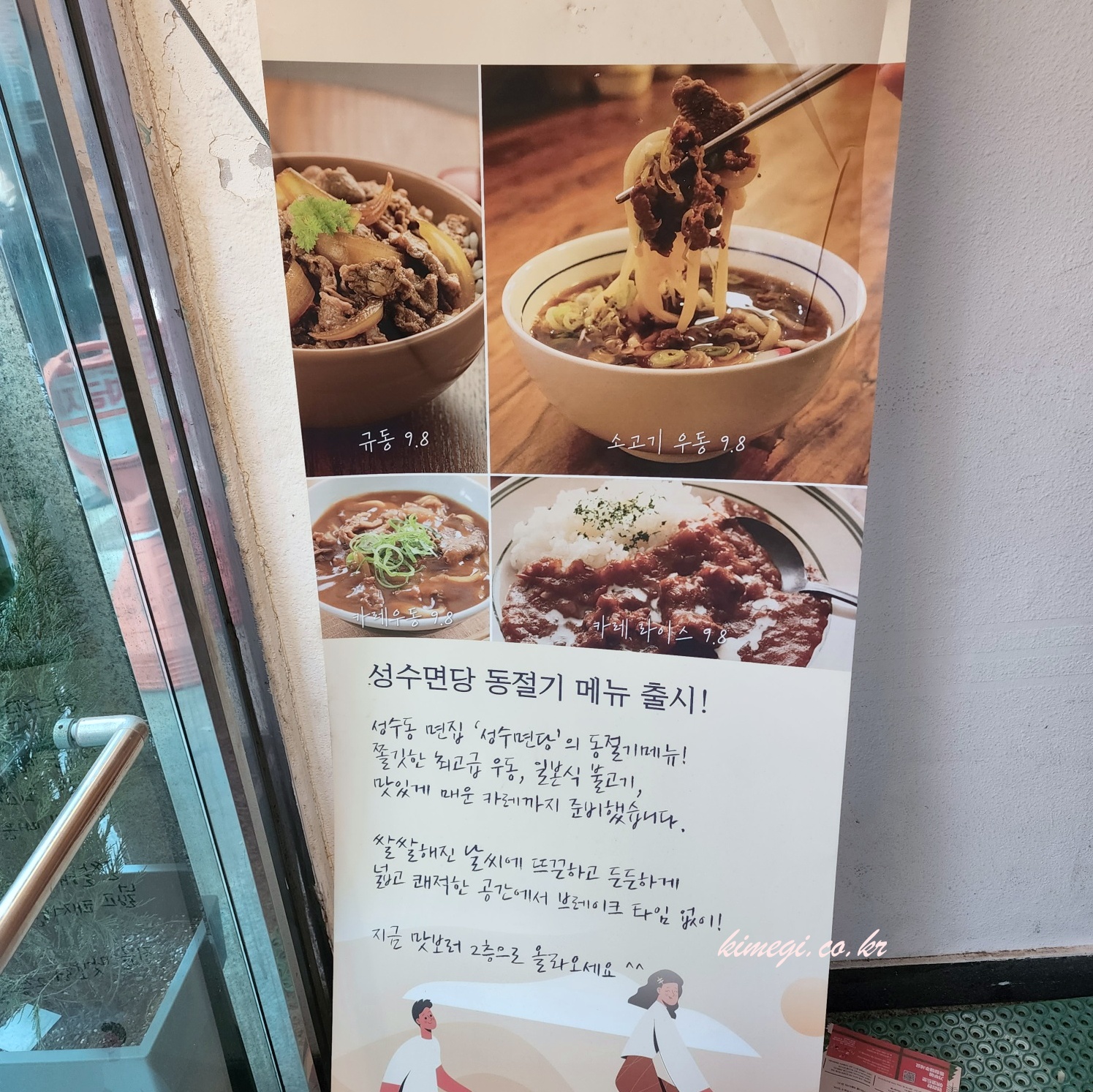 성수면당은 우동이 주 메뉴입니다. 따끈한 국물이 있는 우동부터 카레우동, 비빔우동, 냉면까지 다양한 면요리를 판매하고 있어요. 우동의 종류도 다양하고 정말 맛있어 보입니다. 주문은 입구의 키오스크로 해주면 됩니다.