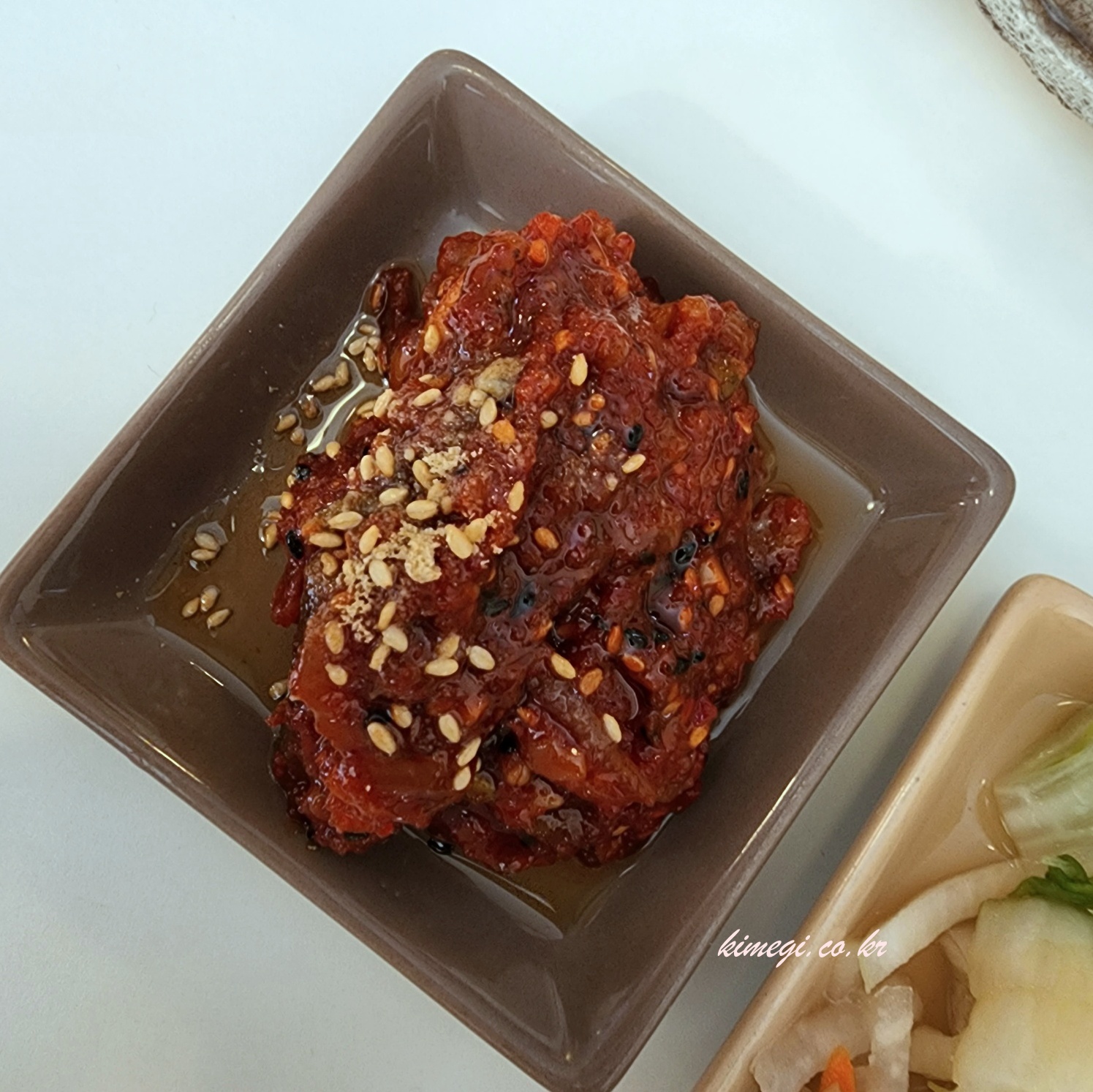 낙지젓이 정말 푸짐하게 나와서 다 넣고 비비면 자겠더라고요. 반만 넣고 간을 맞춘 뒤에 낙지만 골라서 올려 먹었어요. 낙지젓이 진짜 정말 맛있더라고요. 너무 맛있어서 짜지 않았으면 와구와구 먹었을 것 같더라고요. 젓갈이라 당연히 짜서 많이는 못 먹는 것이 아쉽더라고요.