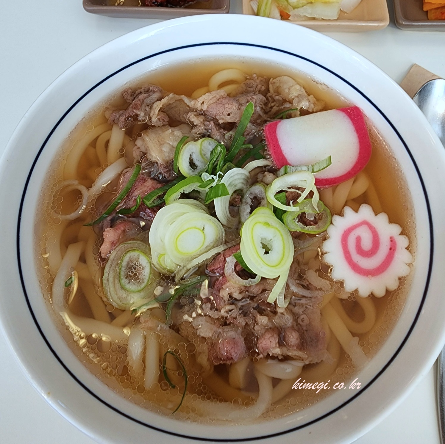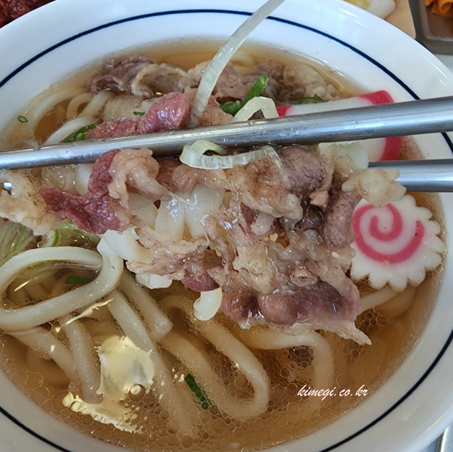 만두를 기다리 가다 그냥 먹기 시작했습니다. 소고기 우동은 진짜 맛있었어요. 우동 국물이 특유의 간장 향이면서도 크게 짜지 않고 참 맛있었어요.