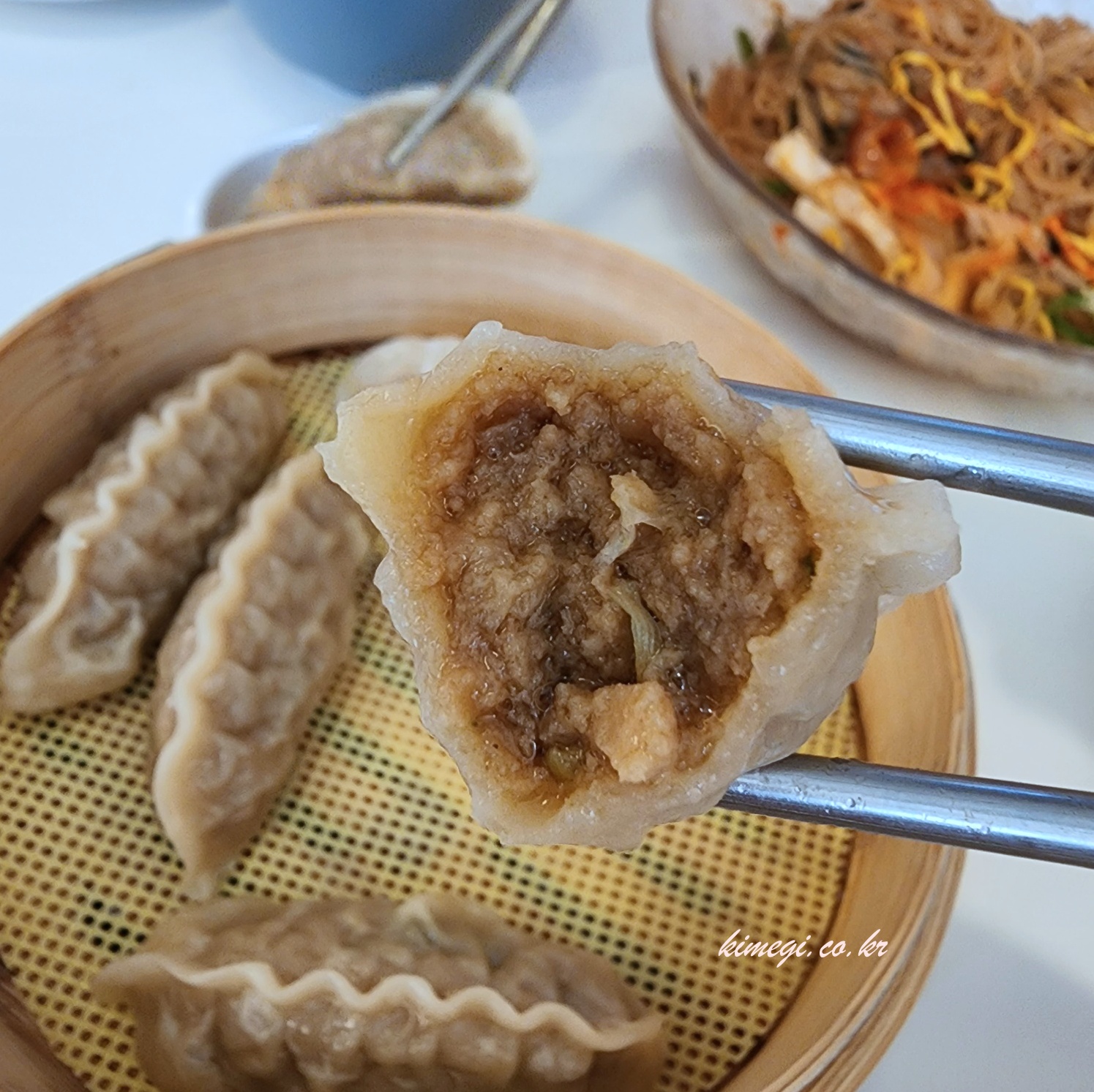 실수로 주문한 갈비만두 한판이 나왔습니다. 고기만두도 먹고 싶었는데 제가 실수해서 어쩔 수 없었어요. 갈비만두가 맛있어서 맛있게 먹었습니다.