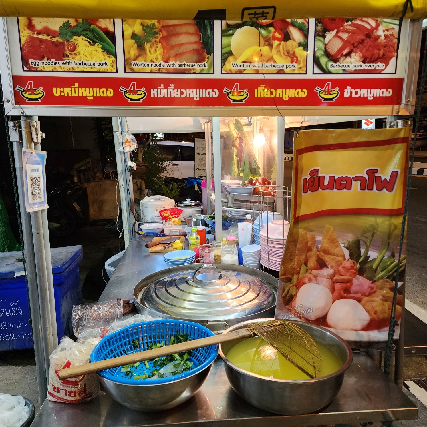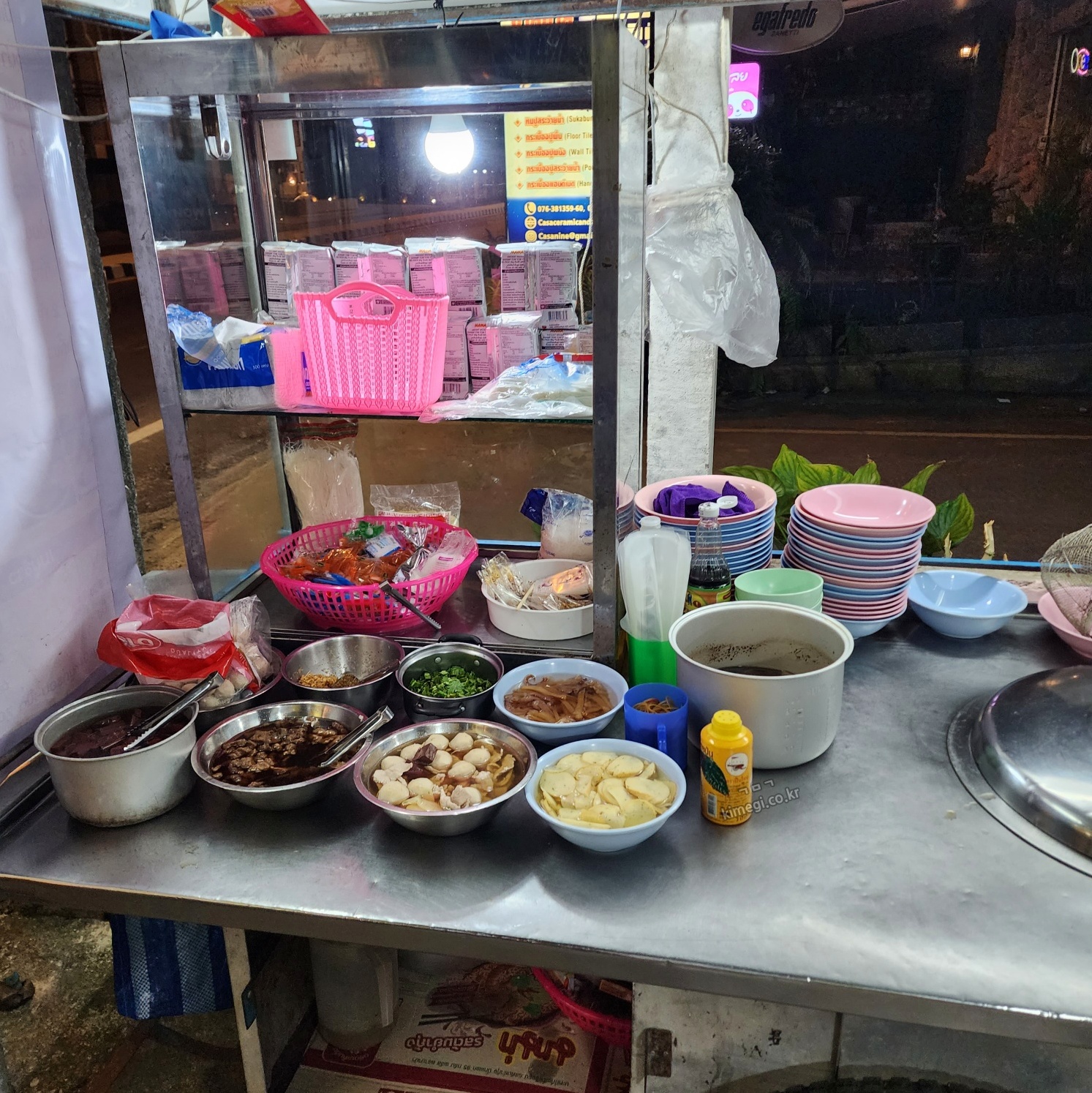 고수 빼주세요 태국말로 "마이싸이팍치"라고 합니다. 그런데 이렇게 말해도 이해를 했는지 제 발음이 맞는지 모르겠더라고요. 노 팍치 노팍치 하고 일단 주문을 했어요. 길거리 포장마차처럼 재료들이 준비되어 있고 음식은 금방 나왔어요.