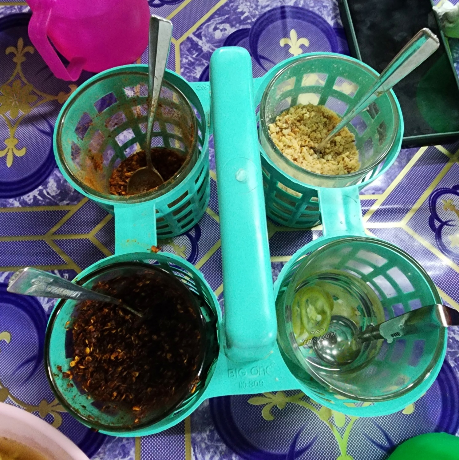 테이블에 소스와 견과류 고춧가루가 있는데 새콤한 소스가 진짜 맛있더라고요. 태국은 국물이 다 새콤한 것이 참 특이하면서 입에 맞아요.