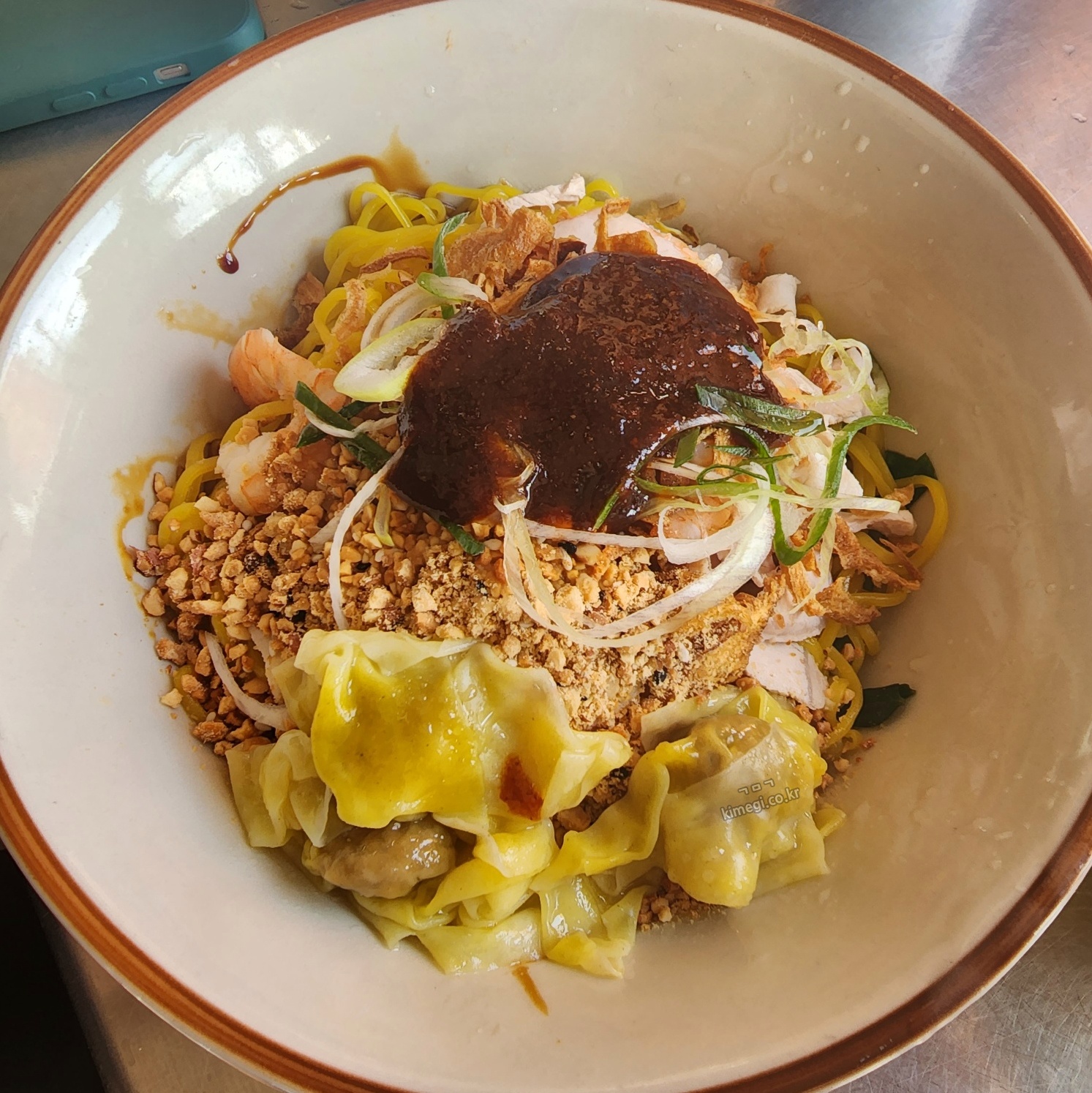 고기가 들어간 것 같지는 않은데 씹히는 식감도 좋고 진짜 맛있었어요. 바미 면은 계란면이라고 하는데 우리나라 짬뽕면 같으면서도 조금 더 졸긴 했어요. 짜파게티와 살짝 비슷하면서도 해산물 맛이 많이 났어요. 태국은 음식의 양이 적은데 점보는 딱 배가 찰정도로 좋았습니다.