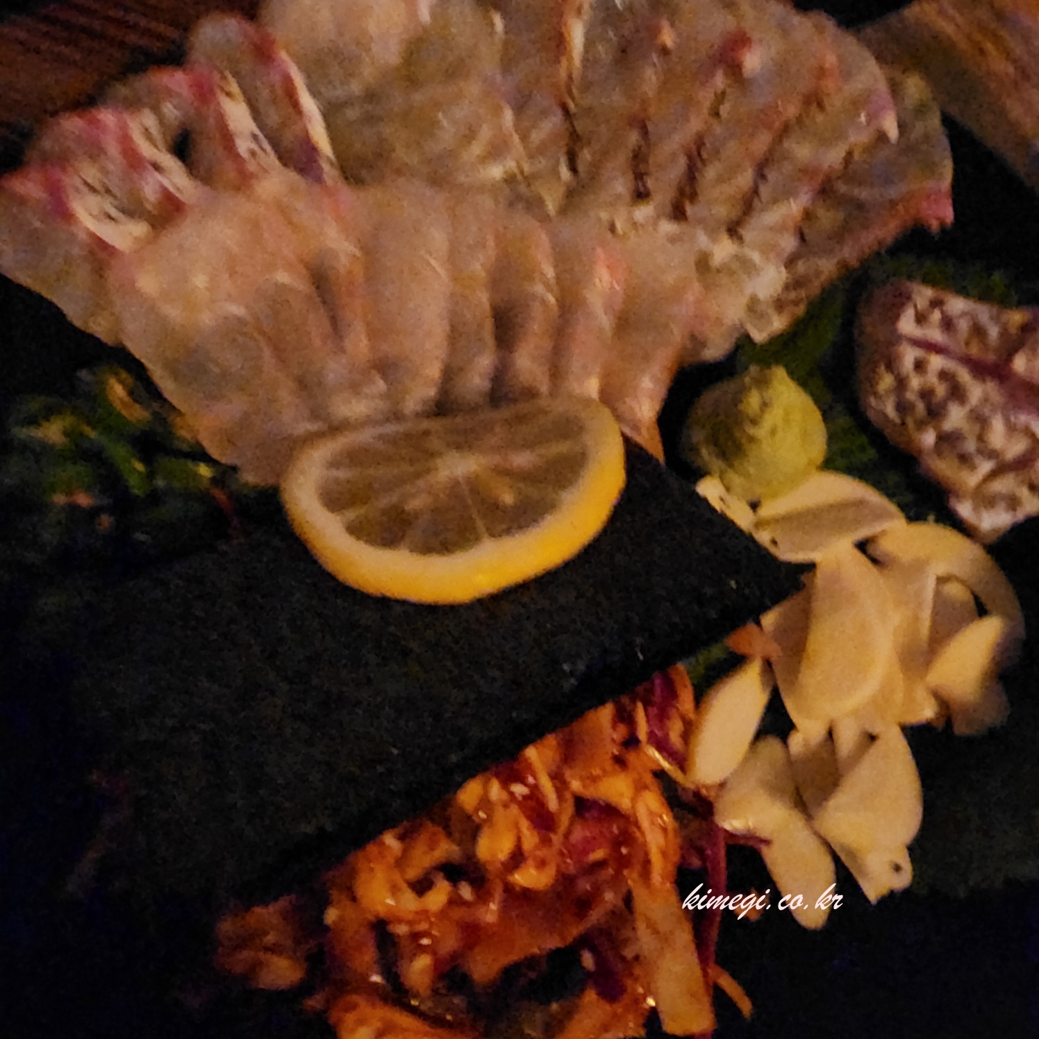 사진은 못찍었지만 활어가 있는 수족관도 있었어요. 신선한 회를 바로 떠서 먹을 수 있는 횟집이에요. 실내가 엄청 크진 않았지만 구석구석 자리가 잘 만들어져 있어서 10 테이블은 되는 것 같았어요.