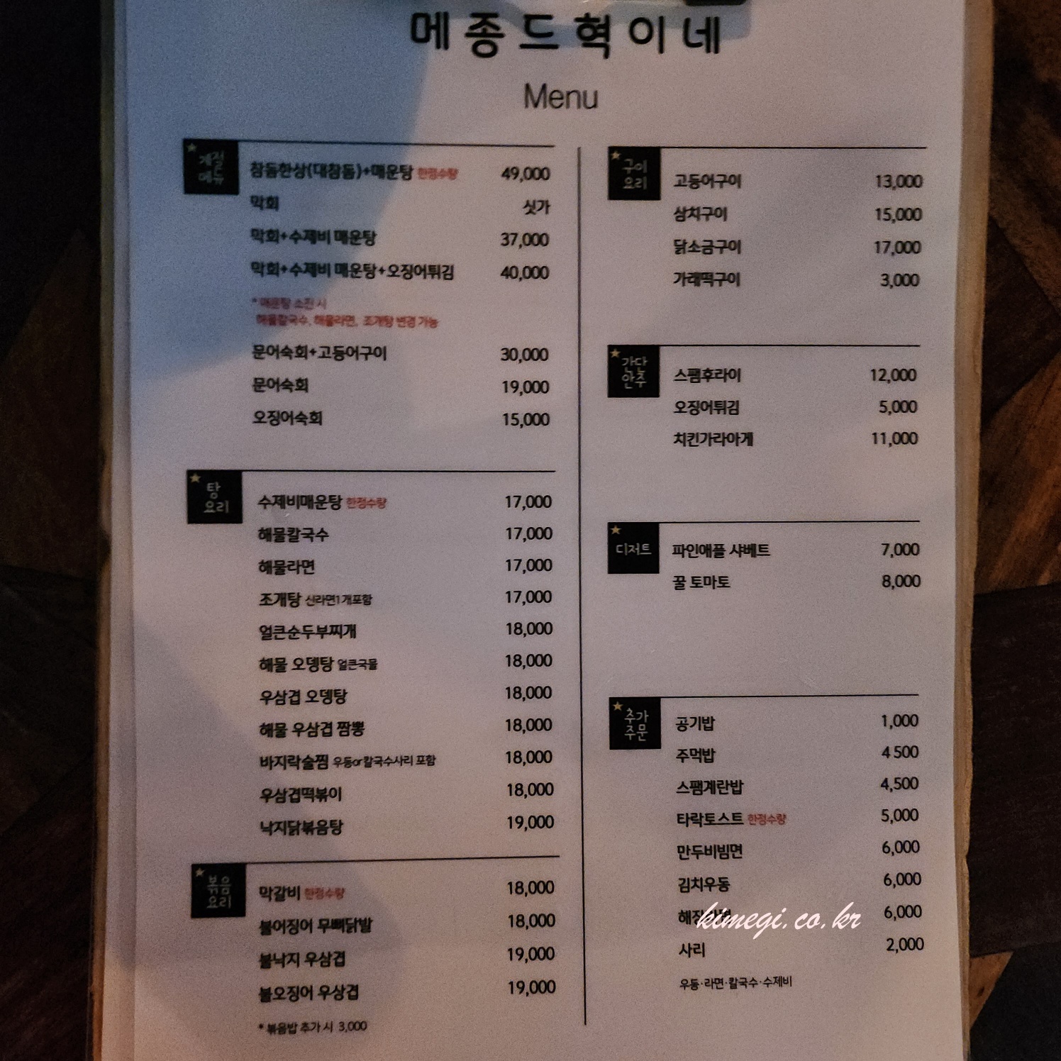 안쪽에 이렇게 테이블을 붙여서 앉았는데 넓어서 편하고 좋았어요. 술병은 안보이지만 1차에서 엄청 마셨어요. 2차 3차까지 갔는데 집에 어떻게 갔는지 모르겠네요. 왕십리 진짜 요즘 핫한 곳인 것 같아요. 역시 핫플레이스는 돌고 도는 것 같아요. 왕십리 메종드 혁이네 정말 추천합니다. 분위기 좋고 안주도 저렴하고 맛있는 곳이에요.