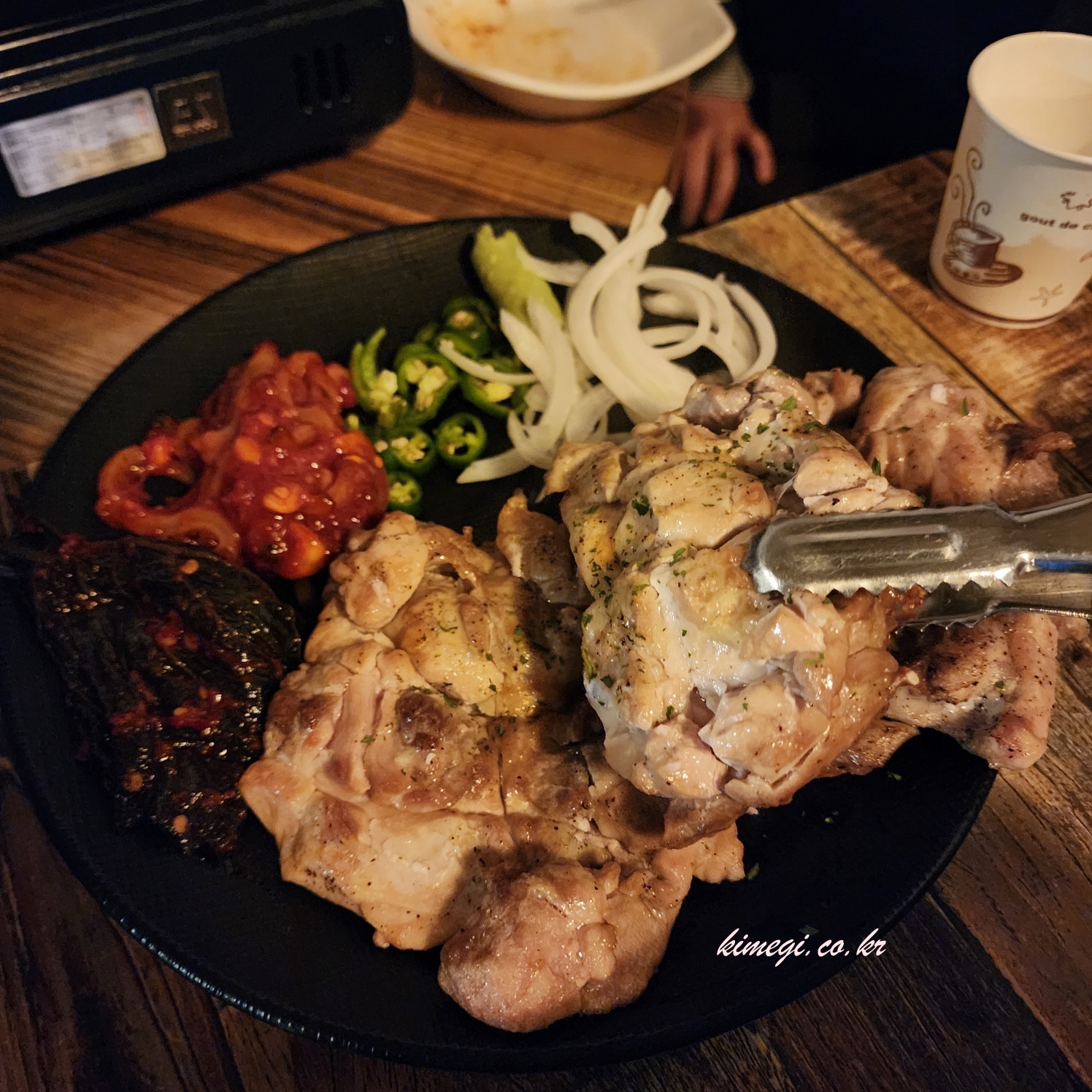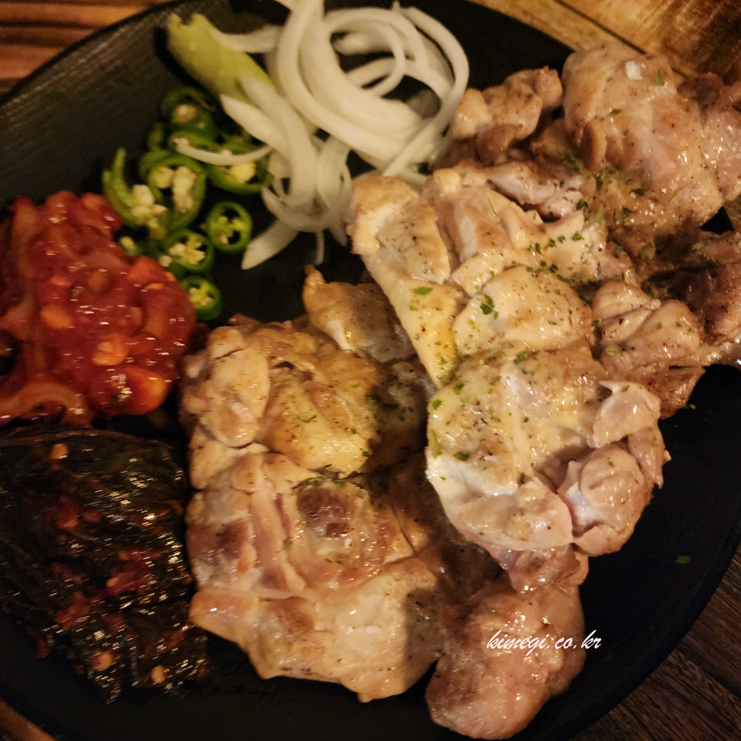 배가 차지 않아서 소금구이 닭소금구이를 주문했어요. 조리가 다 되어져 나왔고 오징어 젓이 같이 나오더라고요. 정말 특이했어요. 양파와 고추와 함께 먹으니까 너무 맛있었어요. 여기 안주 폼 미쳤습니다.