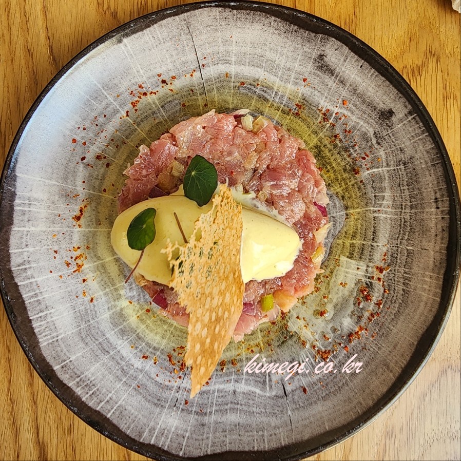 특히, 함께 나온 빵에 올려서 먹으면 진짜 잘 어울리는 맛이었습니다. 프랑스 요리가 이런거구나 하는 느낌을 받을 수 있었어요. 소스가 정말 풍미가 있고 바삭한 쿠키? 가 올라가 있는데 같이 먹으니 식감도 좋았어요.