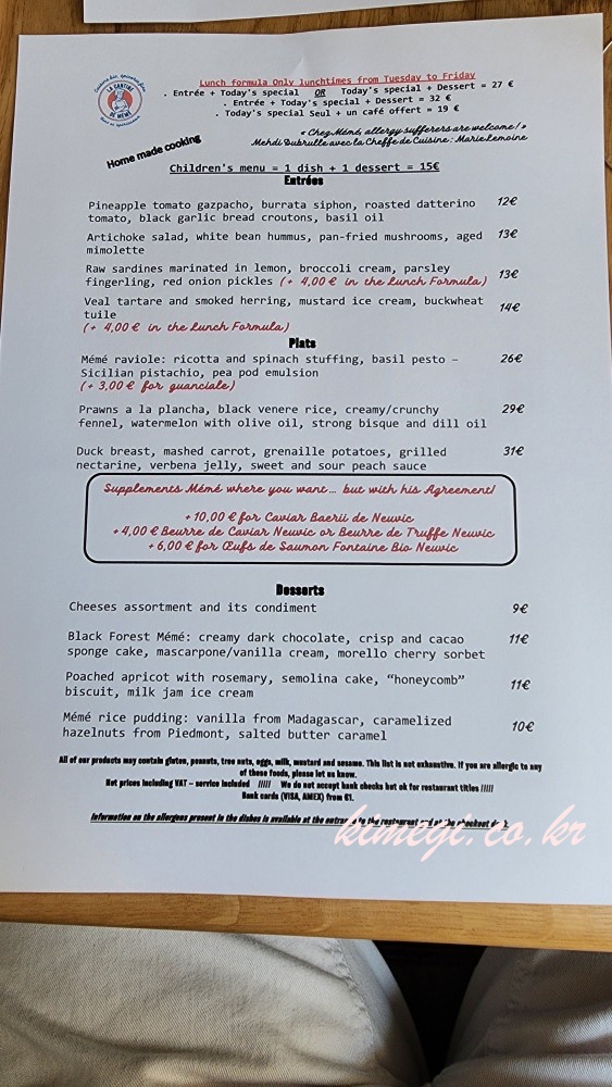 프랑스 맛집 Meme 메뉴판