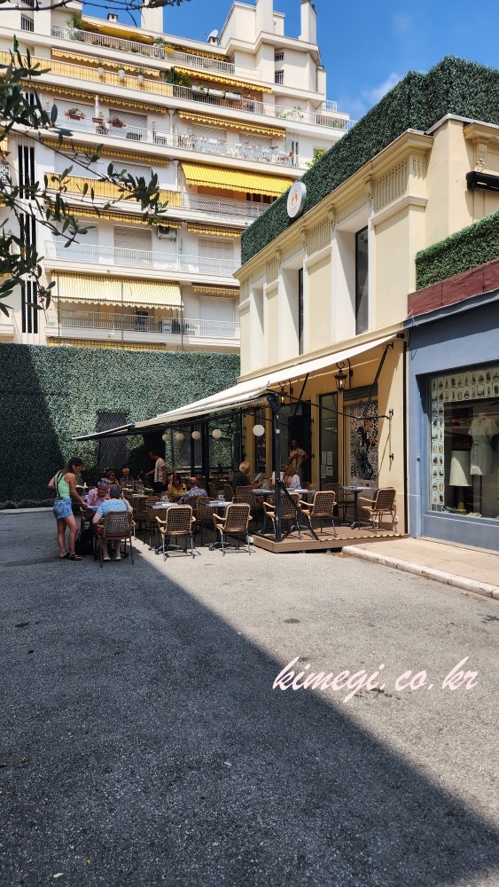일단 숙소에 도착해서 짐을 풀고 씻고 식당으로 갔습니다. 프랑스는 거의 대부분의 식당이 12시 쯤부터 오픈을 하더라고요. 예약을 못해서 오픈 시간에 맞춰 갔는데 자리가 여유가 있어서 바로 들어갈 수 있었어요. 현지 니스 사람들은 대부분 테라스에 앉지만 저희는 시원한 실내로 들어갔어요.