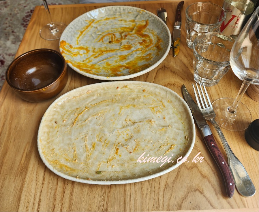 식전빵과 함께 소스까지 싹싹 긁어 먹었습니다. 진짜 프랑스 요리는 소스가 진짜 특이하고 색다르고 맛있습니다.