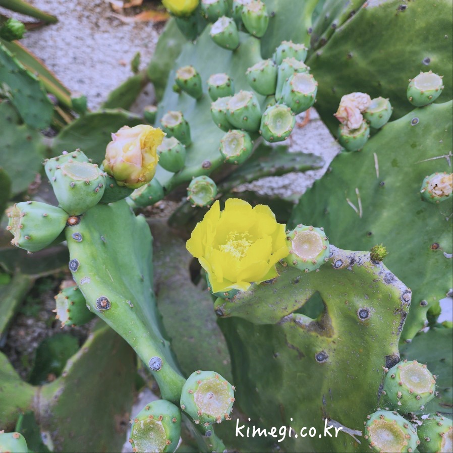 입구부터 예쁜 선인장 꽃을 볼 수 있었습니다. 한국의 외도 느낌이 살짝 나는 것 같더라고요. 에제는 섬이 아닌 산 정상에 선인장으로 예쁘게 꾸며놓은 공원입니다.