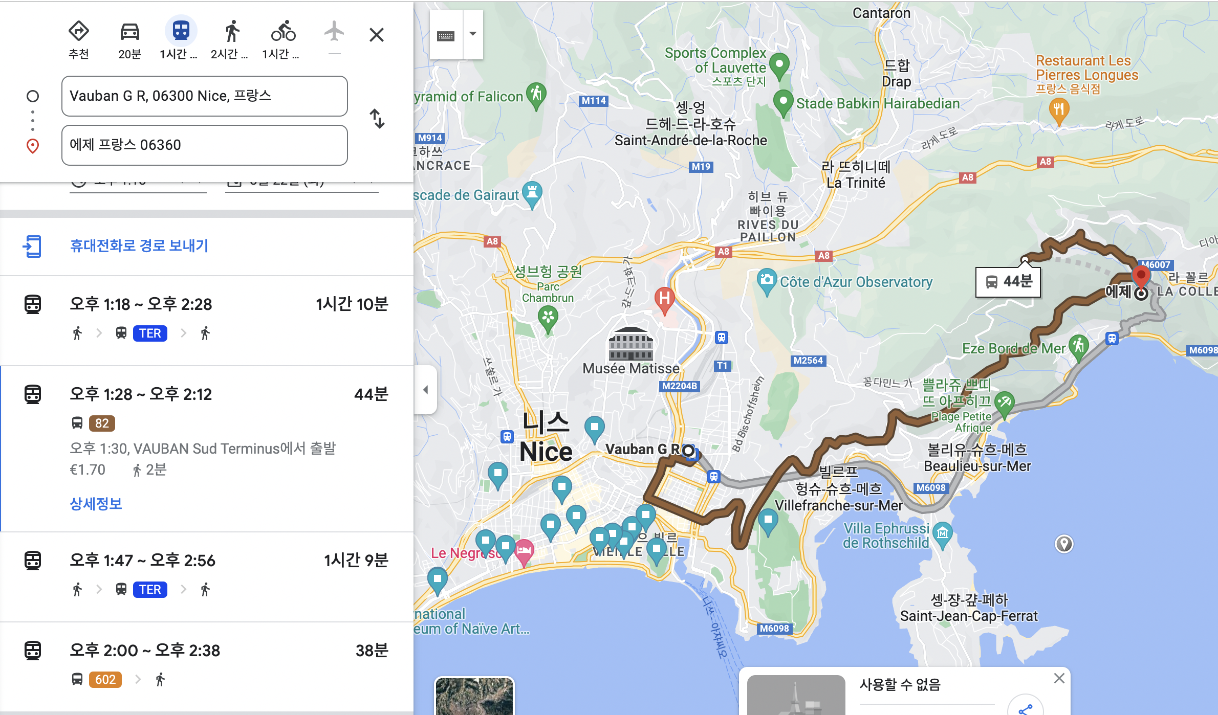 니스 근교 여행 에제빌리지 가는법 602버스 말고 82번, 아니 택시타세요