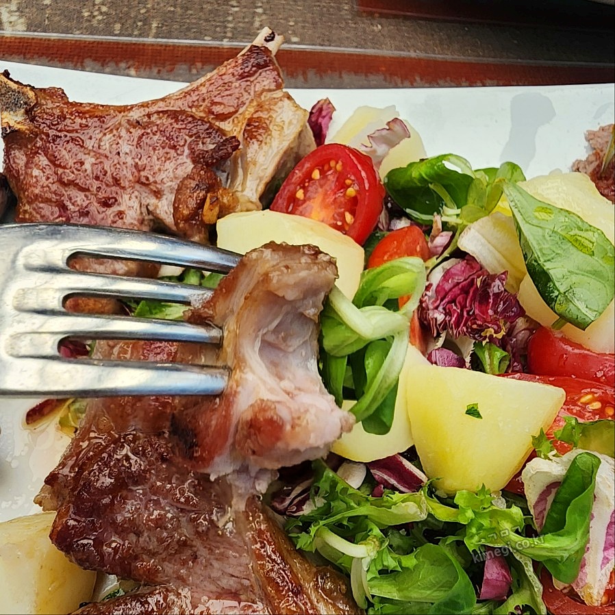 땀도 많이 흘리고 힘들었는데 양고기를 먹으니까 힘이 나더라고요. 감자와 샐러드와 함께 먹으니까 좋았어요. 올리브오일이 진짜 맛있어서 고기의 풍미를 더 살려주는 것 같아요. 뼈에 붙은 고기가 맛있다고 양갈비도 너무 맛있었습니다.